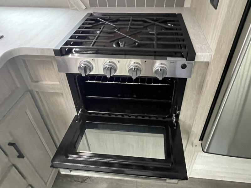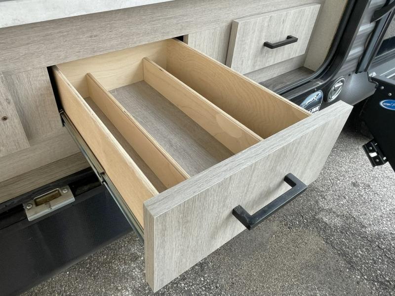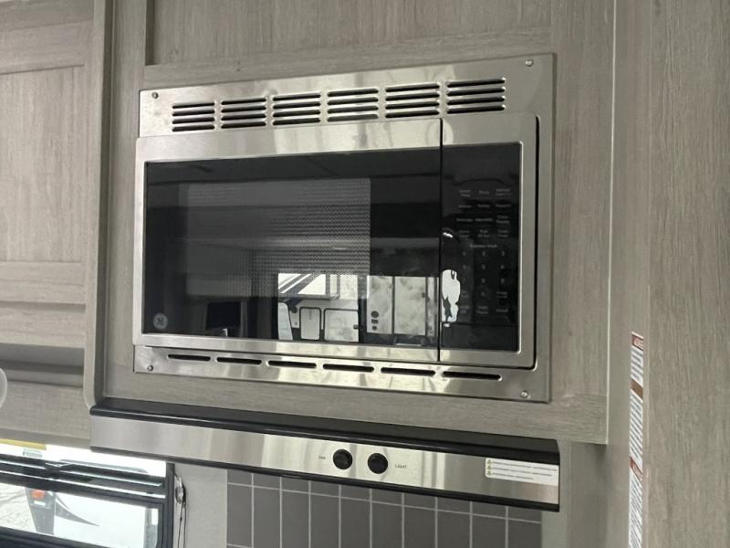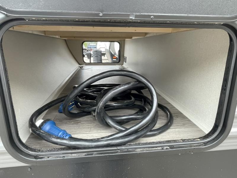 One of the most appreciated features is the dual entry design, giving you quick access to the full bathroom from inside or outside. No more muddy footprints through the trailer when you just need to rinse off or use the restroom. And when it's time to relax, the 21-foot electric awning with multicolor LED lighting creates the perfect vibe for outdoor lounging.