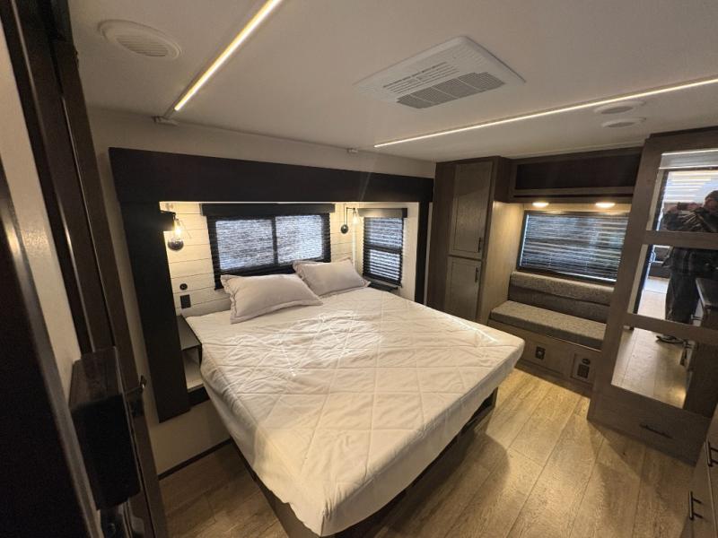 You will have amazing residential comfort in the Forest River Cherokee Arctic Wolf Suite fifth wheels! These units have a “SuperStor” basement storage compartment to allow you to bring more gear, and they have been constructed with a “ToughBend” rigid skirt metal design, a 1x engineered wood “SuperTruss” roof structure with 3/8" decking, and a 5/8” tongue-and-groove plywood floor decking. Each model includes Leash Latch pet safety technology, an outside shower with hot/cold water, preparations for an exterior TV, and motion-sensing lighting. The supersized central air conditioning unit (15,000 BTU) with quick cool and second oversized 15,000 BTU ducted A/C will cool your unit down in a snap when you camp in the hot summer months.