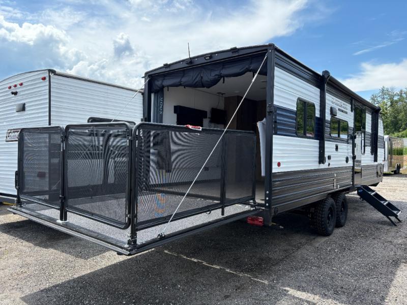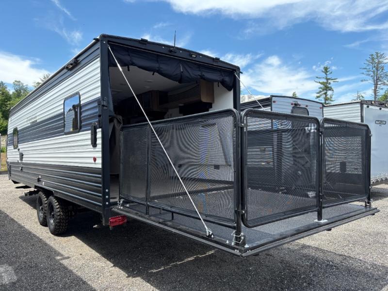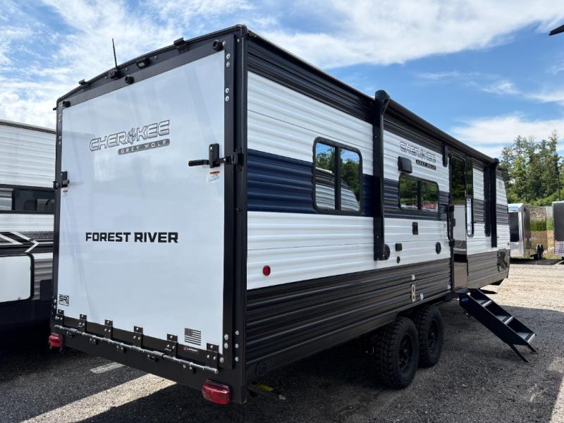 Whether it's a journey that will take you to new locations or a tried-and-true getaway to that favorite and memorable destination, the Forest River Cherokee Grey Wolf travel trailers and toy haulers are going to make the trip worth it every single time! You can travel in confidence with the premium wheel package, seamless roofing membrane with heat reflectivity, Power Gear frame technology with space-saver rail design, and Cherokee back-up camera system. The Cherokee Grey Wolf's interior is highly attractive with its stainless steel kitchen suite package, and premium bedding ensemble and comforter. You will also find a black waste tank flush-out kit, an outside shower with hot and cold water, an armored underbelly tank enclosure, and an RV grill quick connect.