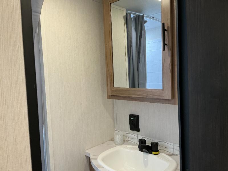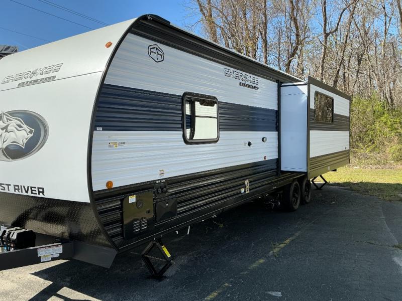 Whether it's a journey that will take you to new locations or a tried-and-true getaway to that favorite and memorable destination, the Forest River Cherokee Grey Wolf travel trailers and toy haulers are going to make the trip worth it every single time! You can travel in confidence with the premium wheel package, seamless roofing membrane with heat reflectivity, Power Gear frame technology with space-saver rail design, and Cherokee back-up camera system. The Cherokee Grey Wolf's interior is highly attractive with its stainless steel kitchen suite package and premium bedding ensemble and comforter. You will also find a black waste tank flush-out kit, an outside shower with hot and cold water, an armored underbelly tank enclosure, and an RV grill quick connect.