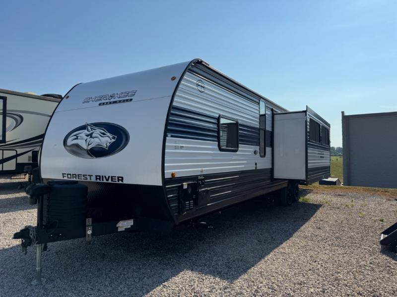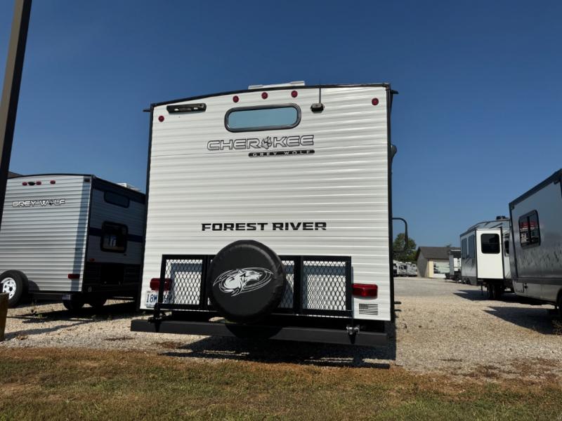 Whether it's a journey that will take you to new locations or a tried-and-true getaway to that favorite and memorable destination, the Forest River Cherokee Grey Wolf travel trailers and toy haulers are going to make the trip worth it every single time! You can travel in confidence with the premium wheel package, seamless roofing membrane with heat reflectivity, Power Gear frame technology with space-saver rail design, and Cherokee back-up camera system. The Cherokee Grey Wolf's interior is highly attractive with its stainless steel kitchen suite package and premium bedding ensemble and comforter. You will also find a black waste tank flush-out kit, an outside shower with hot and cold water, an armored underbelly tank enclosure, and an RV grill quick connect.