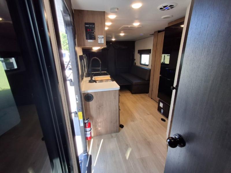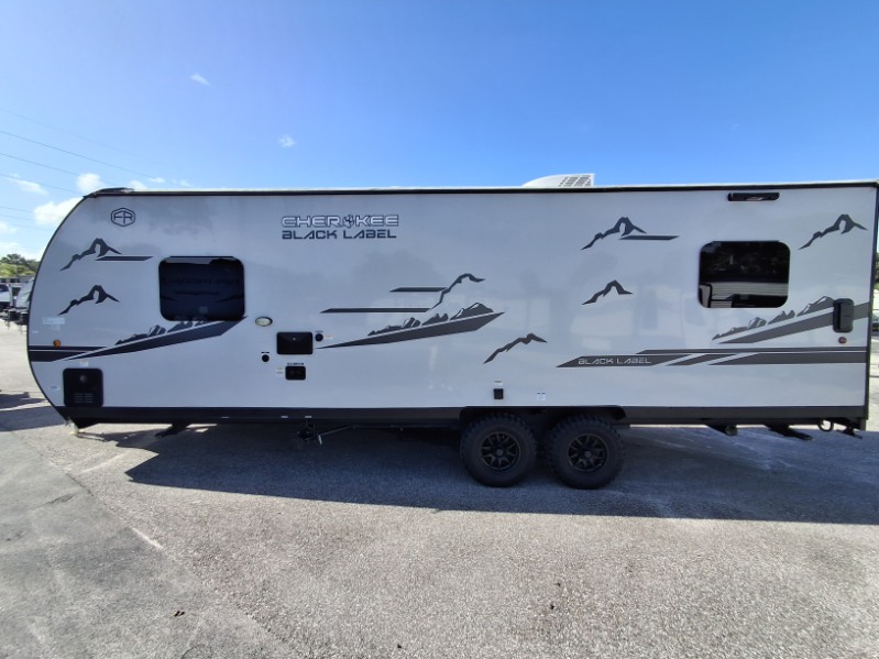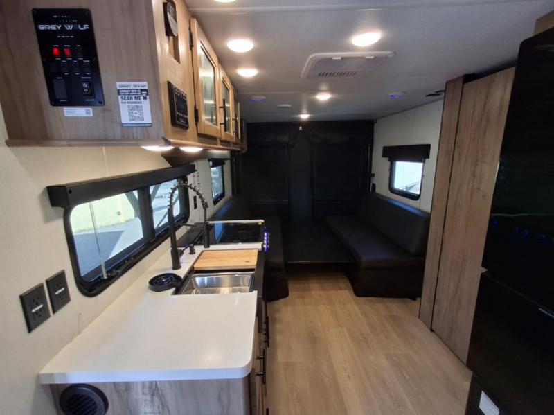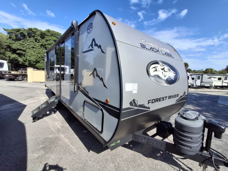 Whether it's a journey that will take you to new locations or a tried-and-true getaway to that favorite and memorable destination, the Forest River Cherokee Grey Wolf Black Label travel trailers and toy haulers are going to make the trip worth it every single time! The Black Label Package includes Thermo-Foil Arctic insulation, hung fiberglass gel coat sided walls, and frameless window package. There are also upgraded solid surface countertops and reading lights, plus designer cushion fabrics to make you feel right at home. You can travel in confidence with the premium wheel package, seamless roofing membrane with heat reflectivity, Power Gear frame technology with space-saver rail design, and Cherokee back-up camera system.