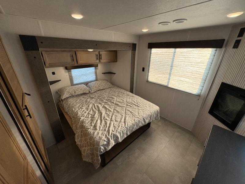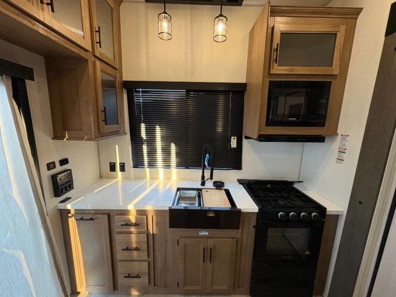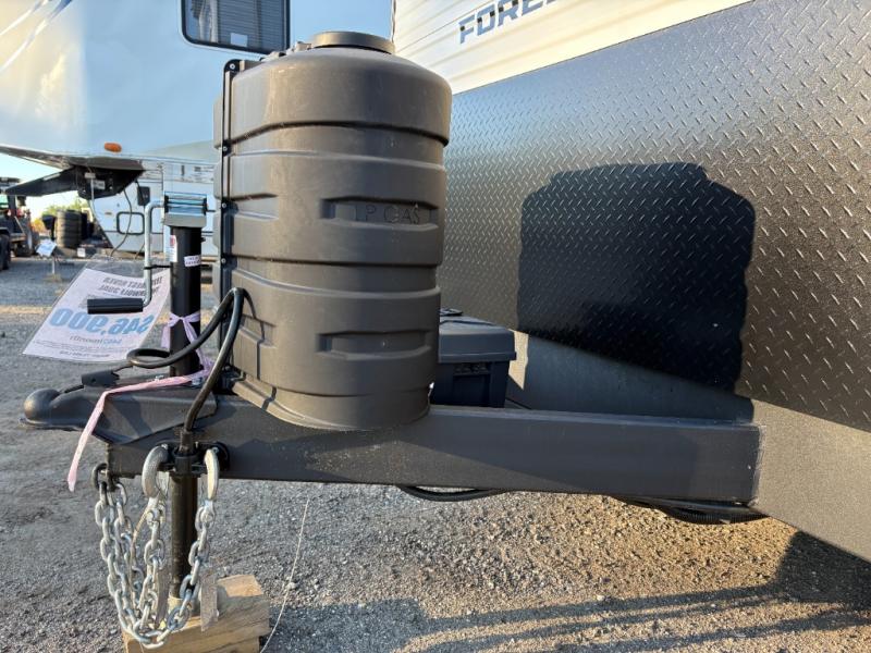 Enjoy comforts of home wherever you decide to roam in a Timberwolf destination trailer by Forest River. The seamless roofing membrane with heat reflectivity and power gear frame technology provide a durable foundation to your RV. You will also appreciate the exclusive solar thermo controlled reflective tinted safety glass windows, tire pressure monitors, and an on-demand tankless water heater to make extended stays easier than ever. Inside, the night shades will provide your crew with privacy, while the LED lights illuminate your space. There are seamless countertops, along with a premium bedding ensemble and comforter, USB charging stations, a supersized central A/C unit, and many more comforts!