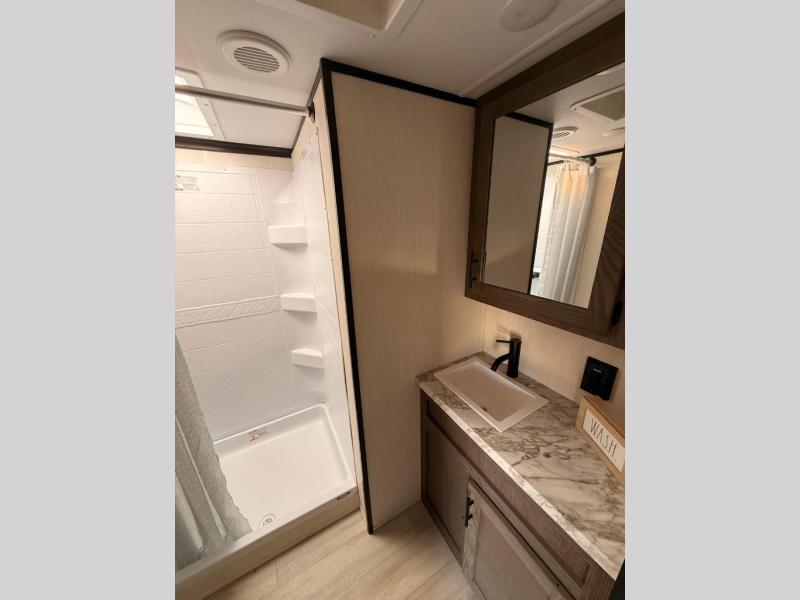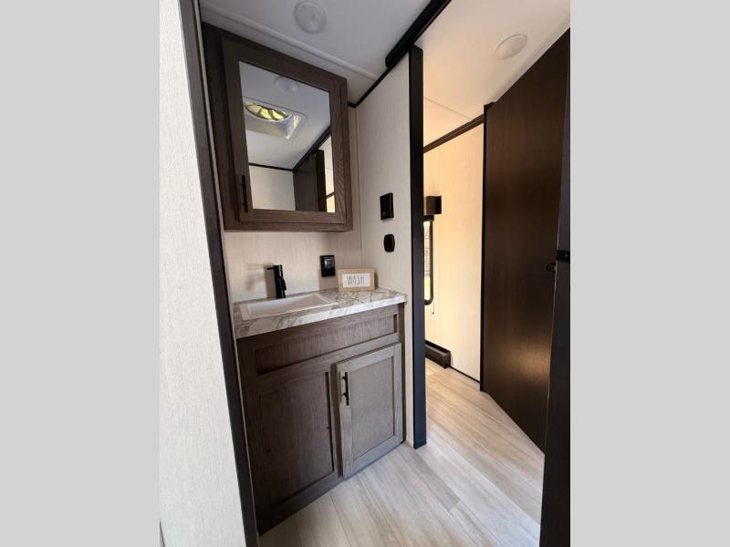 With any Cherokee Wolf Pack toy hauler by Forest River, you will enjoy never-ending adventures. You'll appreciate the 8' 6" wide body design so you can bring along toys and gear, and there is a high-output LED loading light for added convenience when you're getting back to camp late. There is real wood cabinet doors and drawers inside and LED lights to keep your space well lit. These toy haulers are built with tongue and groove plywood main floors and a forced air heated underbelly and enclosed holding tanks that will help you extend your camping season.