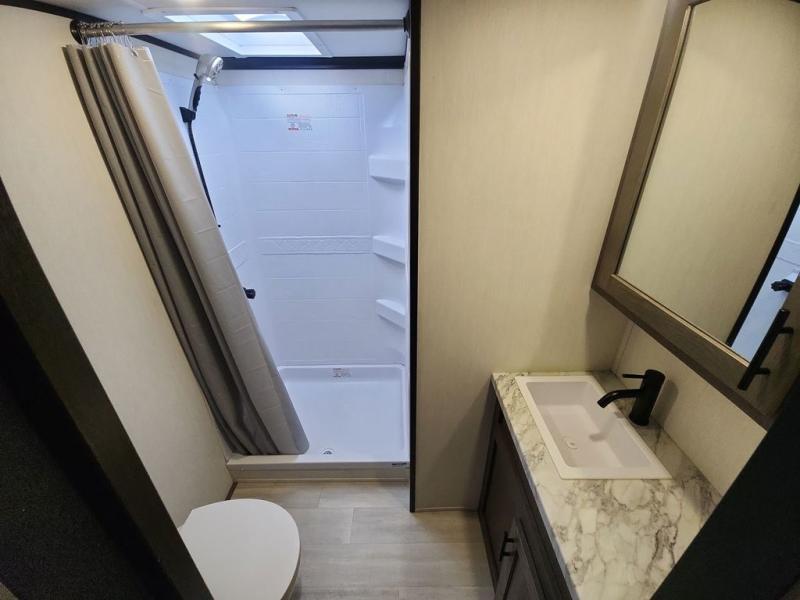 With any Cherokee Wolf Pack toy hauler by Forest River, you will enjoy never-ending adventures. You'll appreciate the 8' 6" wide body design so you can bring along toys and gear, and there is a high-output LED loading light for added convenience when you're getting back to camp late. There is real wood cabinet doors and drawers inside and LED lights to keep your space well lit. These toy haulers are built with tongue and groove plywood main floors and a forced air heated underbelly and enclosed holding tanks that will help you extend your camping season.
