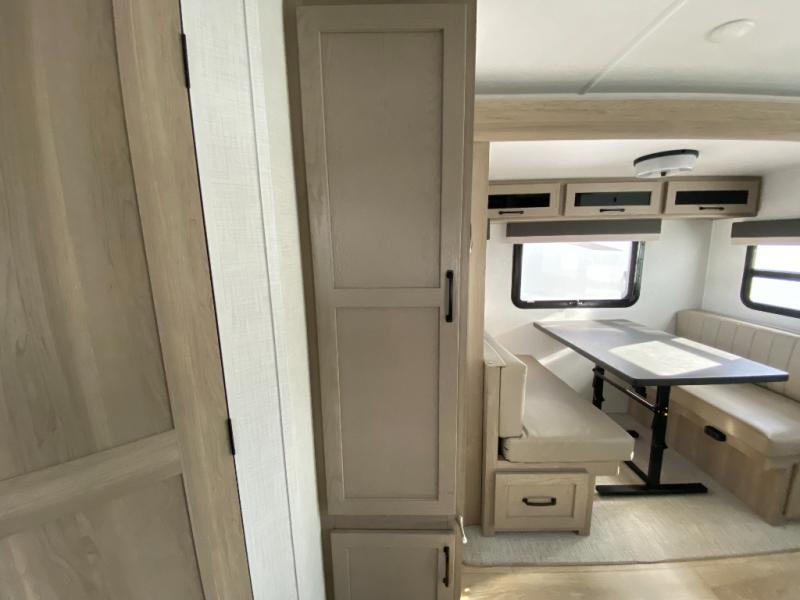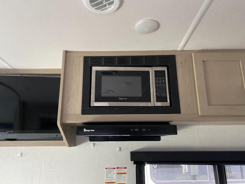 With any Flagstaff Micro Lite travel trailer by Forest River you will enjoy lightweight towing, durable construction, and added interior comforts to make each trip memorable! Each model features a torsion axle, Rubber-Ryde suspension, nitrogen filled, Goodyear Endurance tires, and easy lube axles with Nev-R-Adjust brakes for smooth towing from home to campground. The 6-sided aluminum framed construction provides a strong foundation so you can enjoy your RV for years to come, plus electronically controlled heated holding tanks and an enclosed underbelly will let you camp all year long. Head inside to find hybrid woven flooring in the slide outs, Sedona wood cabinetry, solid surface kitchen countertops, and many more amenities. These travel trailers also include exterior conveniences for hassle-free camping, like the power tongue jack, magnetic compartment door catches, Keyed Alike locks, and rear ladder to name a few!