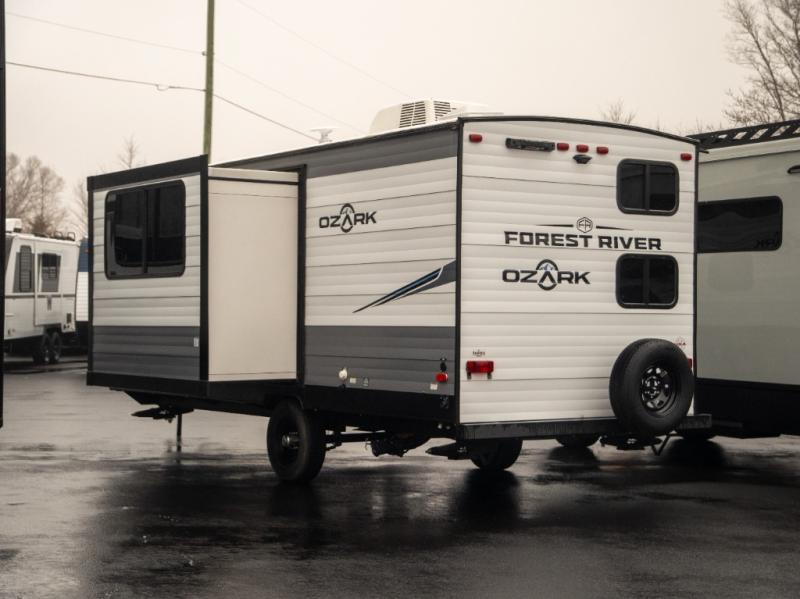 With any Ozark travel trailer or toy hauler by Forest River, you can expect lightweight towing, tons of standard features, and a great value! Each one is built with solid materials, including fiberglass insulation throughout, front diamond plate rock guard for added protection, and a powder coated I-beam frame with camber for more structural support! The stylish interior will have you feeling right at home, and you'll find plenty of storage spaces for your personal belongings, camp gear, and more. And since there are a variety of floorplans to choose from, including Limited Edition travel trailers, single axle and dual axle models, plus toy haulers, you're sure to find the Ozark that fits your needs!