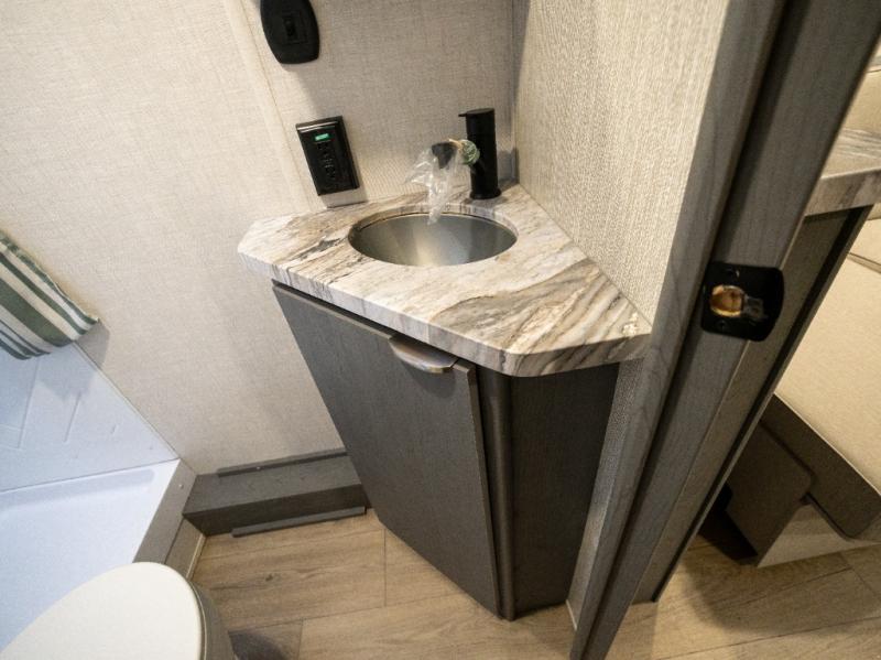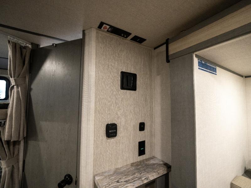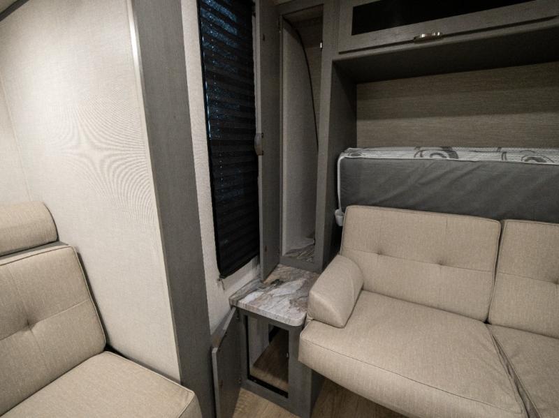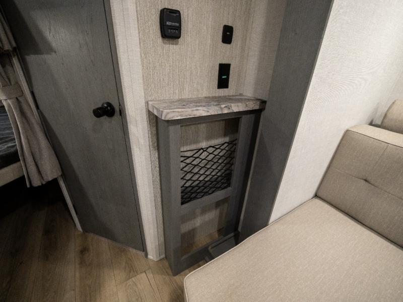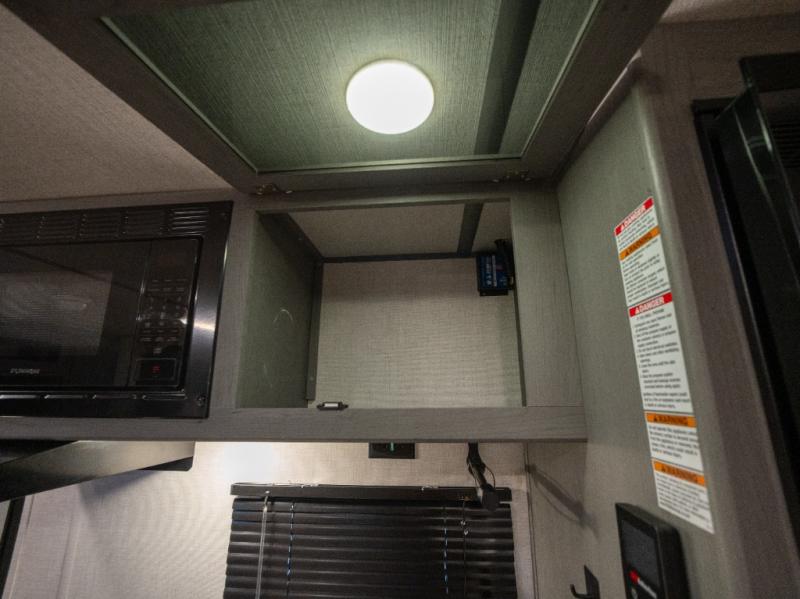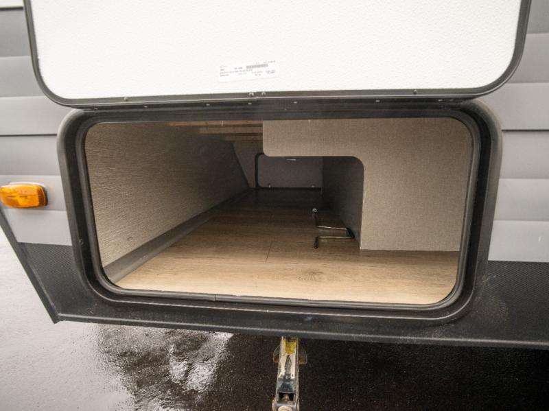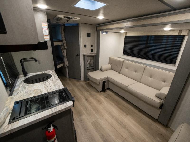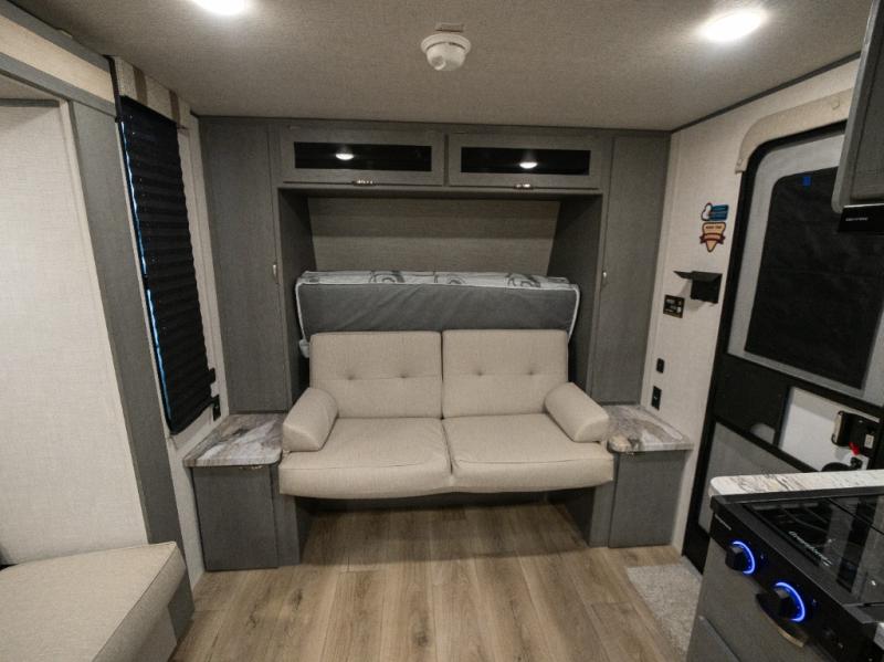 You can create the perfect oasis with this Ozark travel trailer! The exterior is outfitted with a 14' power awning to protect you from the hot summer sun and rain. On the interior, there is extra roominess thanks to the single slide. This slide holds the U-shaped dinette/booth dinette combo where you can dine at. The Murphy bed is especially useful when you are trying to be frugal with your space because it can fold away to reveal a sofa during the day allowing more space to move about. The double-size bunks provide plenty of sleeping space, and the panoramic window and lets the sunshine in.