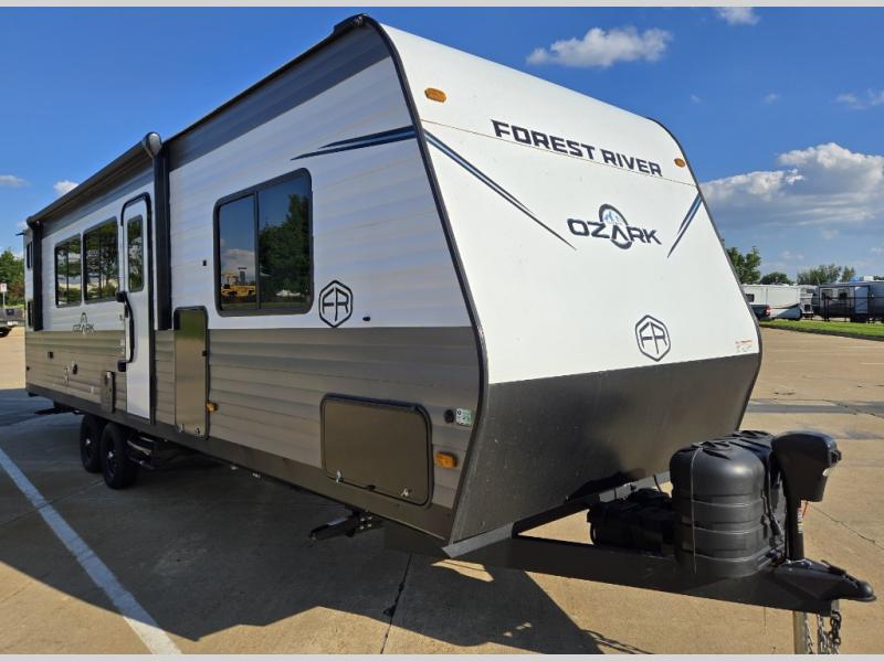 With any Ozark travel trailer or toy hauler by Forest River, you can expect lightweight towing, tons of standard features, and a great value! Each one is built with solid materials, including fiberglass insulation throughout, front diamond plate rock guard for added protection, and a powder coated I-beam frame with camber for more structural support! The stylish interior will have you feeling right at home, and you'll find plenty of storage spaces for your personal belongings, camp gear, and more. And since there are a variety of floorplans to choose from, including Limited Edition travel trailers, single axle and dual axle models, plus toy haulers, you're sure to find the Ozark that fits your needs!
