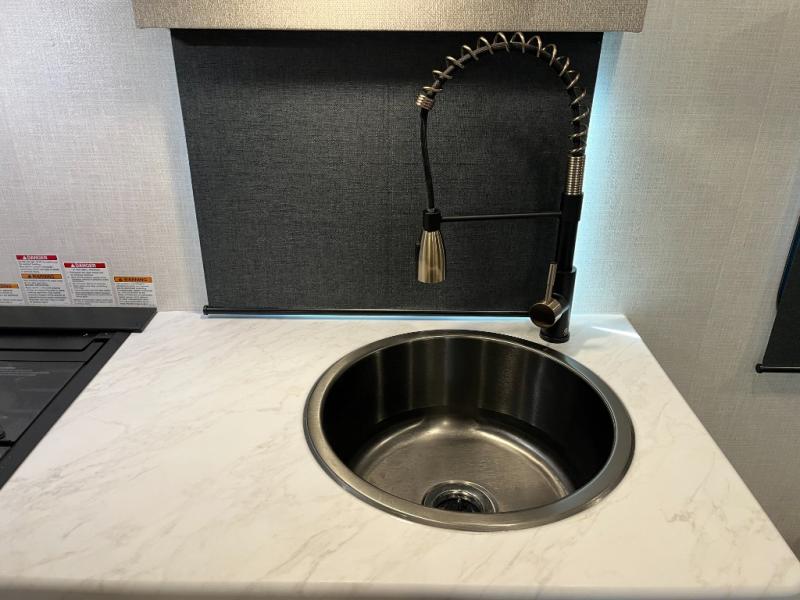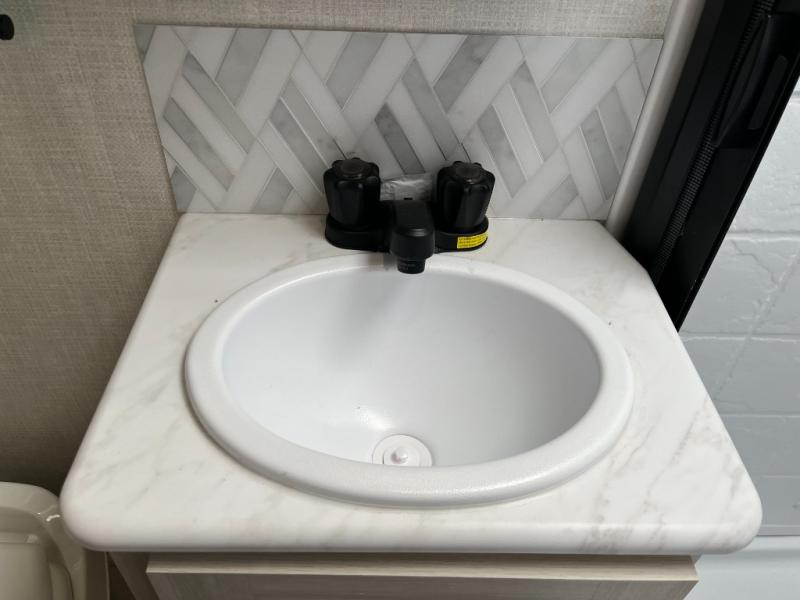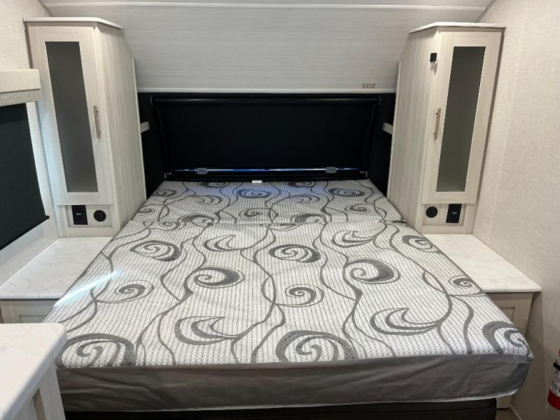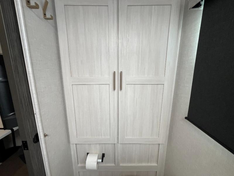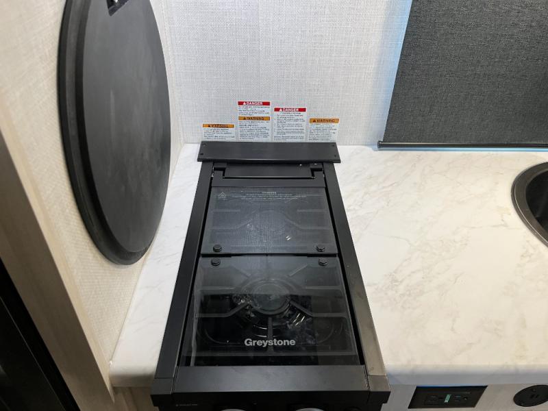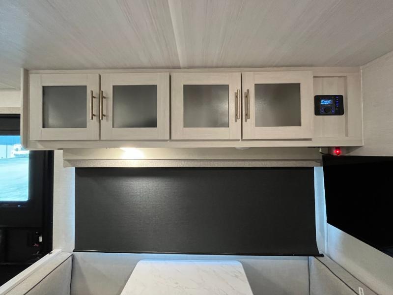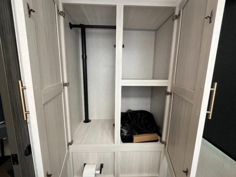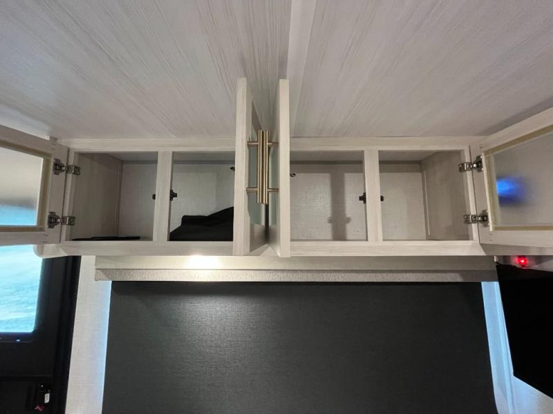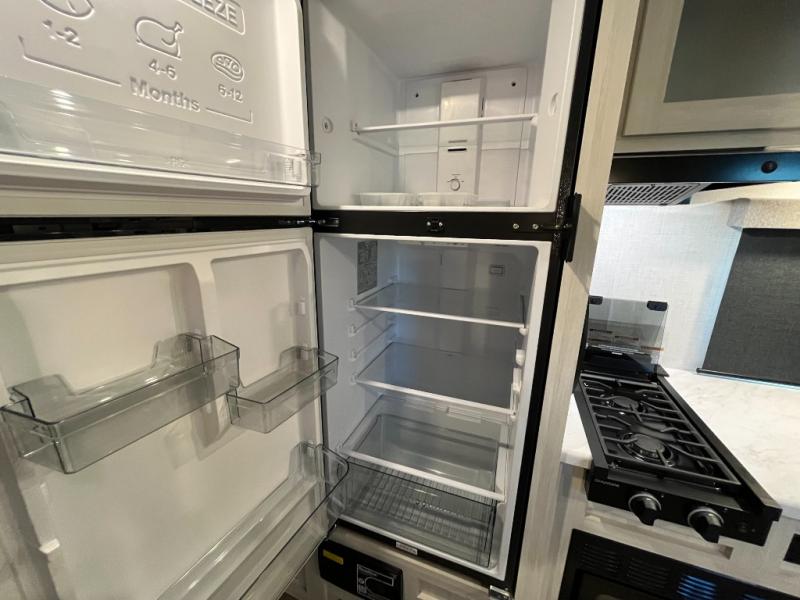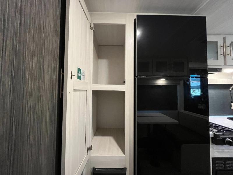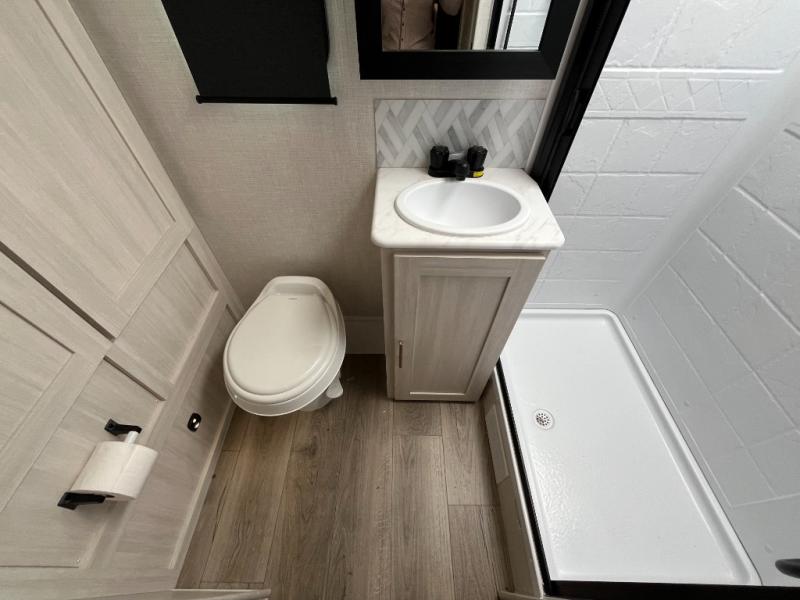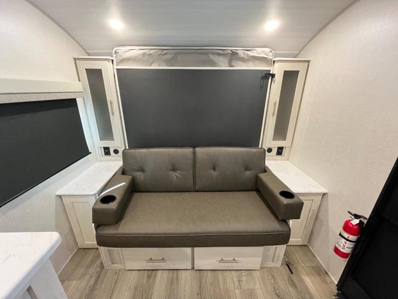 Step inside and you’ll find an inviting interior where cozy living space meets practical convenience. The efficient galley kitchen is equipped for everyday meal prep with ample counter space and storage, while the spacious rear bath offers a comfortable layout for refreshing after outdoor exploration. A well-placed dinette provides room to dine, lounge, or convert into extra sleeping space, and generous storage helps keep gear organized wherever your journey takes you.