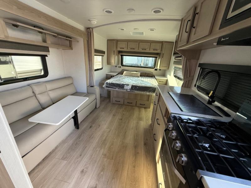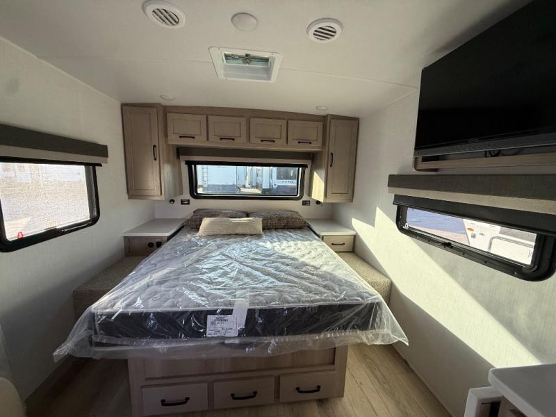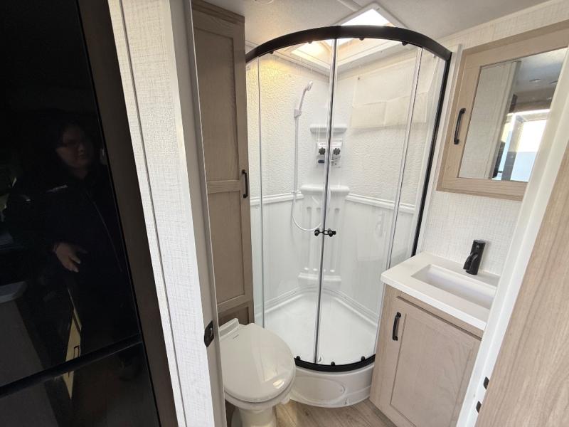 Each Rockwood Mini Lite travel trailer by Forest River is constructed with a fully laminated one-piece walkable roof, sleek frameless windows, and a six-sided full aluminum frame for strength and durability. The 12V thermostatically controlled heated tanks, plus radiant foil in the underbelly and slide out floors will allow you to camp well into the colder months, and the 200W roof solar panel will be perfect for a little off-gridding. Each model includes solid surface kitchen countertops, solid wood cabinet doors, night roller shades, plus many more interior features. Having an AIR 360+ omnidirectional antenna with WiFi prep on board gives you the option to get some work done if it's needed, and the power tongue jack provides hassle-free set up, so you can enjoy more time relaxing!