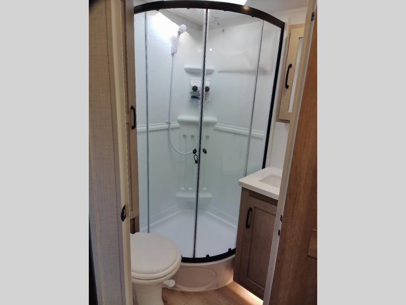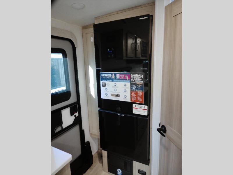 Each Rockwood Mini Lite travel trailer by Forest River is constructed with a fully laminated one-piece walkable roof, sleek frameless windows, and a six-sided full aluminum frame for strength and durability. The 12V thermostatically controlled heated tanks, plus radiant foil in the underbelly and slide out floors will allow you to camp well into the colder months, and the 200W roof solar panel will be perfect for a little off-gridding. Each model includes solid surface kitchen countertops, solid wood cabinet doors, night roller shades, plus many more interior features. Having an AIR 360+ omnidirectional antenna with WiFi prep on board gives you the option to get some work done if it's needed, and the power tongue jack provides hassle-free set up, so you can enjoy more time relaxing!
