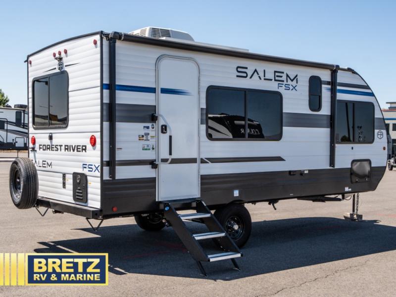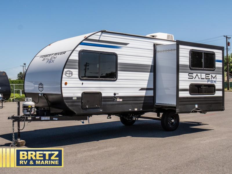The Forest River Salem FSX travel trailers and toy hauler travel trailers are ultra comfortable and lightweight, perfect for first time or seasoned campers alike! You will love how easy it will be to relax with residential features that will make your space feel just like home, and the durable construction means you can enjoy your RV for years to come. There are a wide variety of floorplans to choose from, including couple's trailers, bunk models, and toy haulers, all with full bath and kitchen amenities and plenty of storage for all your gear!