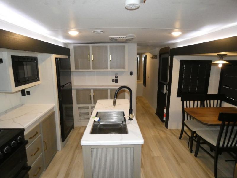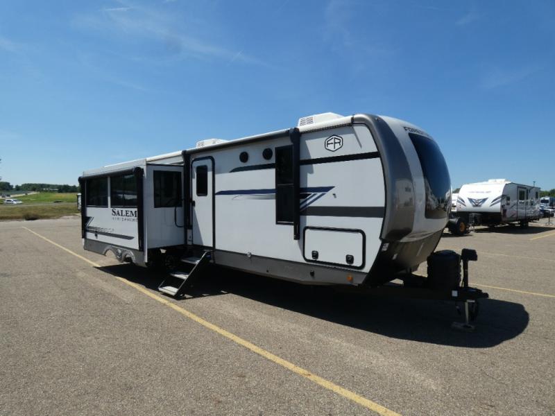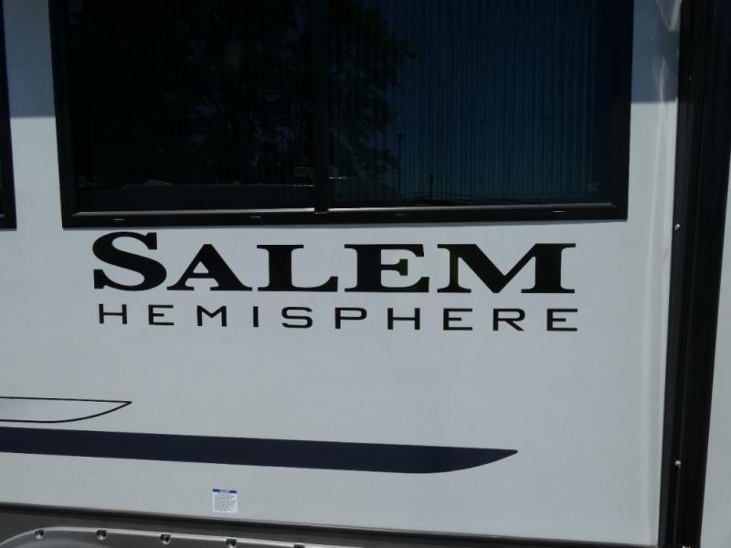 The Salem Hemisphere fifth wheels and travel trailers by Forest River are packed with features, while still being value-minded! Each model is constructed with laminated "Aluma Frame" sidewalls and floor with block foam insulation plus full length barreled ceilings for added head space. There are LED awning, marker and tail lights outside, along with an extra large pass-thru storage with slam latch baggage doors, plus solar prep and Lippert On-The-Go ladder prep. The 60K on-demand tankless water heater will provide endless hot showers, and the JBL sound system includes a head unit plus interior and exterior speakers to keep the party going. There are also many interior comforts found throughout that will make you feel right at home!