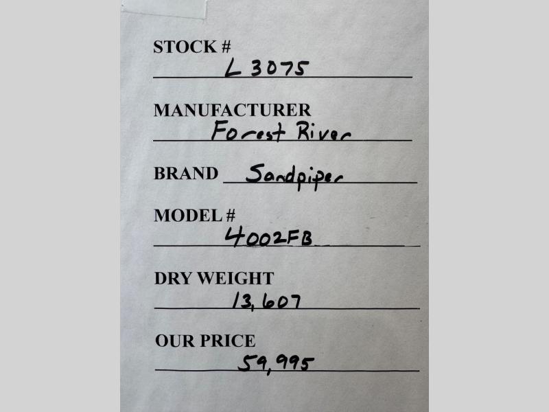 Used 2025 Forest River RV Sandpiper 4002FB Fifth Wheel