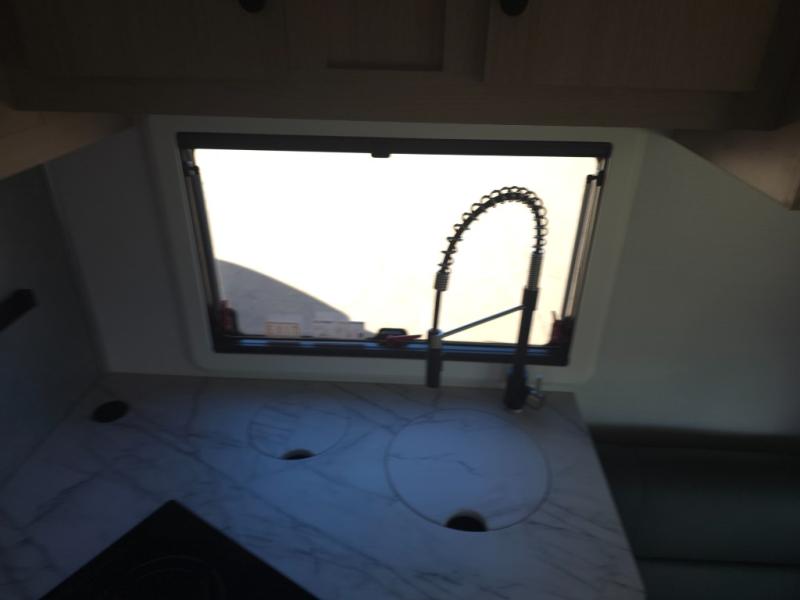 This coach will feel just like home with its double bed in the rear bedroom, a full bath, plus plenty of storage space for your comforts. Once you park for the day you can prepare lunch on the induction stove top, and dine together at the two person dinette up front. If the weather is nice, you may just want to take your plate outdoors to sit under the 14' power awning with LED lights.