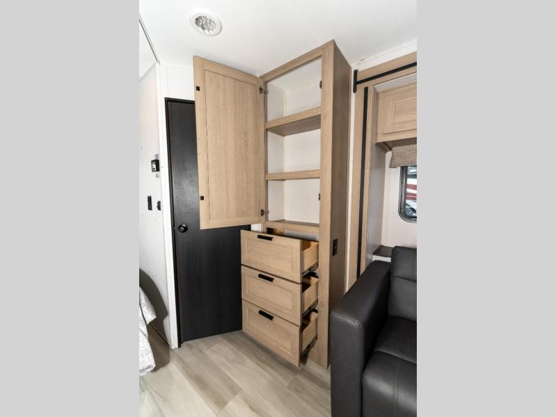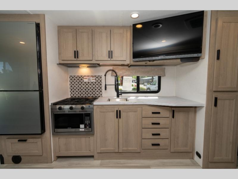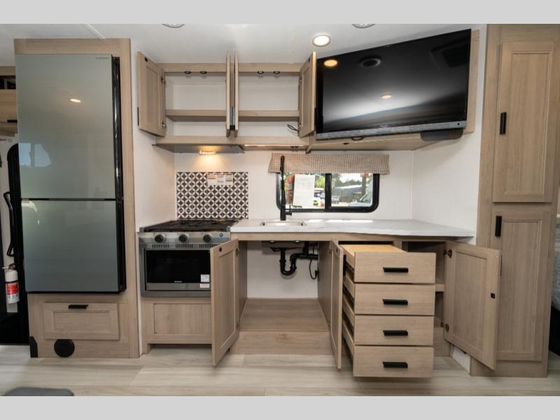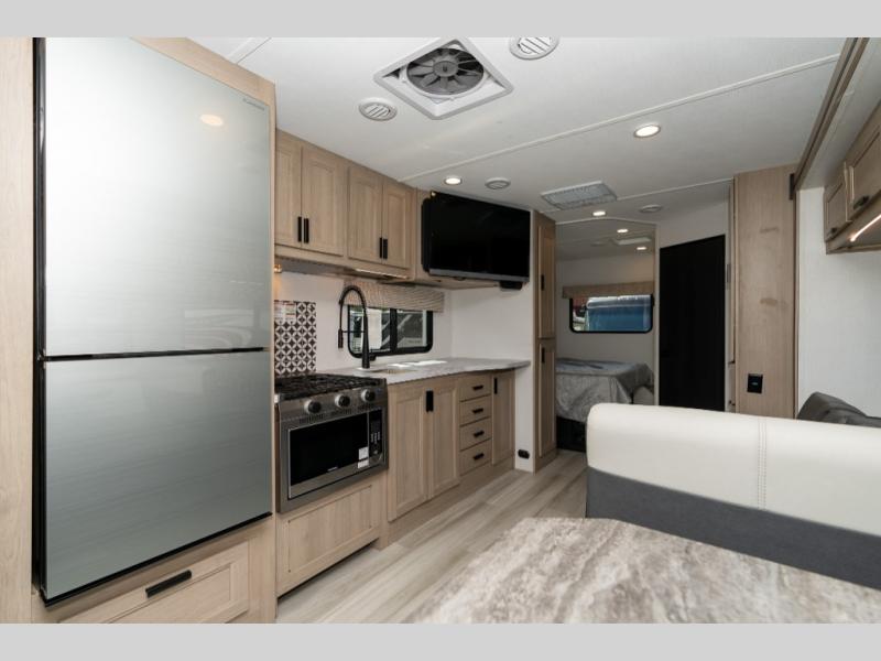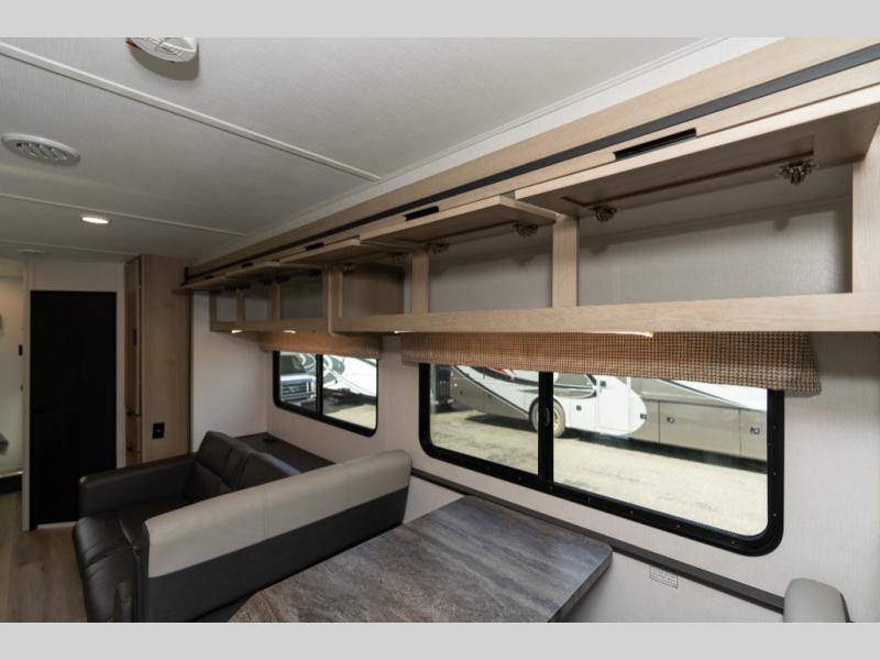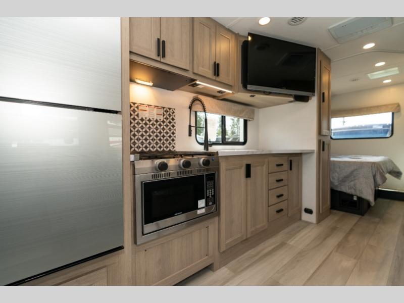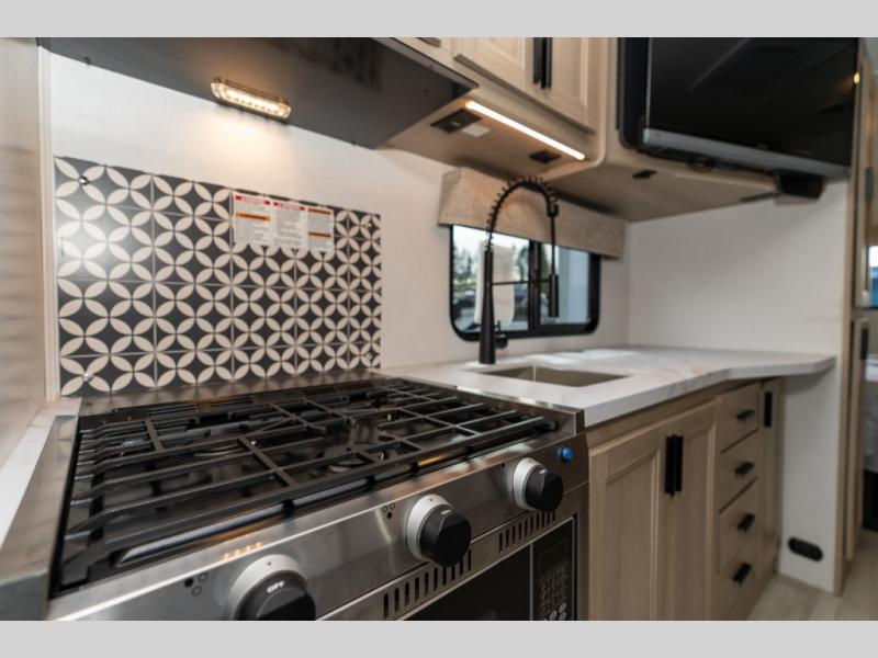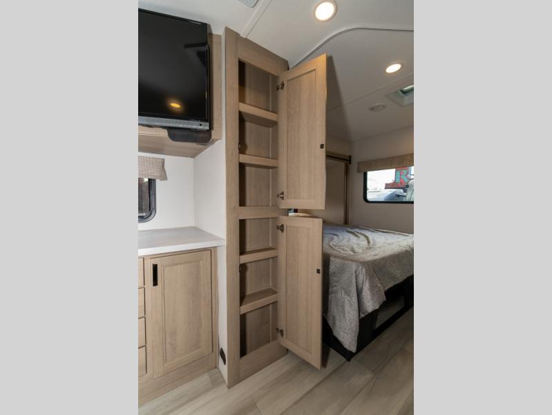 Don't make the mistake of passing up this Sunseeker LE Class C gas motorhome! There is a full bathroom with a shower skylight, oxygen-infused shower head with flexible extension, and an electric roof fan, and the bathroom is right next to the bedroom for convenience. The pantry, linen closet, wardrobe, and overhead storage offer you places to tuck away your belongings, and there are also two large storage drawers in the booth dinette as well. While you're resting on the sofa, you can watch the 12V LED TV, or you can chat with the chef who is preparing dinner on the recessed three-burner range or in the convection microwave.