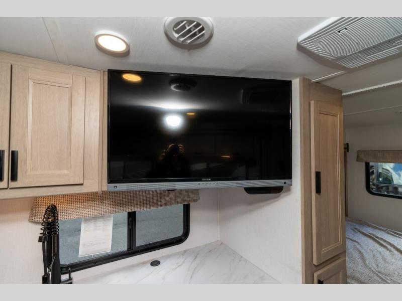 Each Forest River Sunseeker LE Class C gas motorhome comes with the LE Premier Package for your benefit! This package includes great features like backup/sideview cameras with rearview mirror monitor, a fiberglass front cap, an in-dash premium sound system with Bluetooth, a Winegard Air 360+ antenna with preparation for Gateway 4G Wi-Fi, toppers for the slide outs, and a 15,000 BTU ceiling-ducted, ultra-quiet roof air with heat pump. All of these premium features rest on a Superlite composite substrate, 2"-thick gel-coat sidewalls with lightweight composite waterproof material, block-foam insulation, and a fiberglass roof. There is a satellite/cable connection, a 30,000 BTU furnace, a Maxx Air multi-speed power fan, and black-out roller shades.