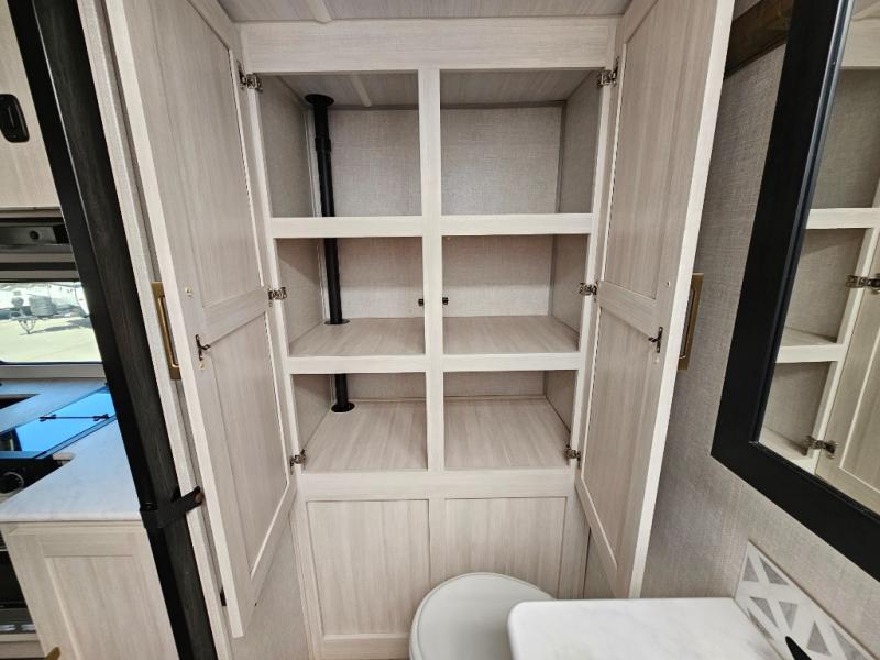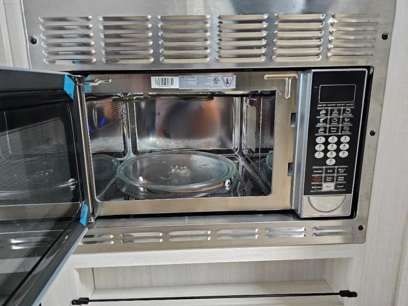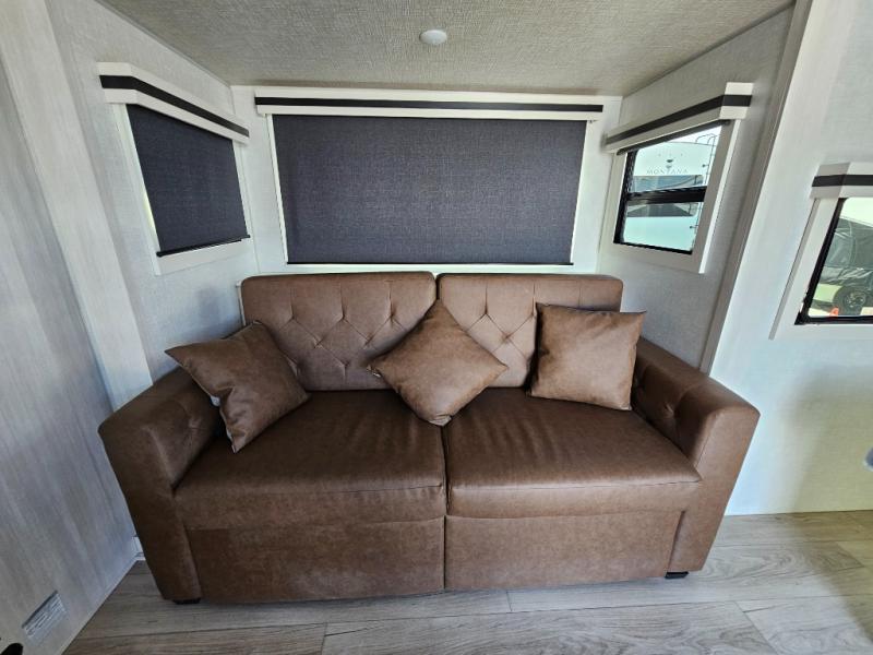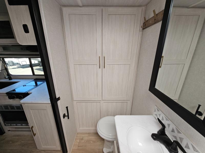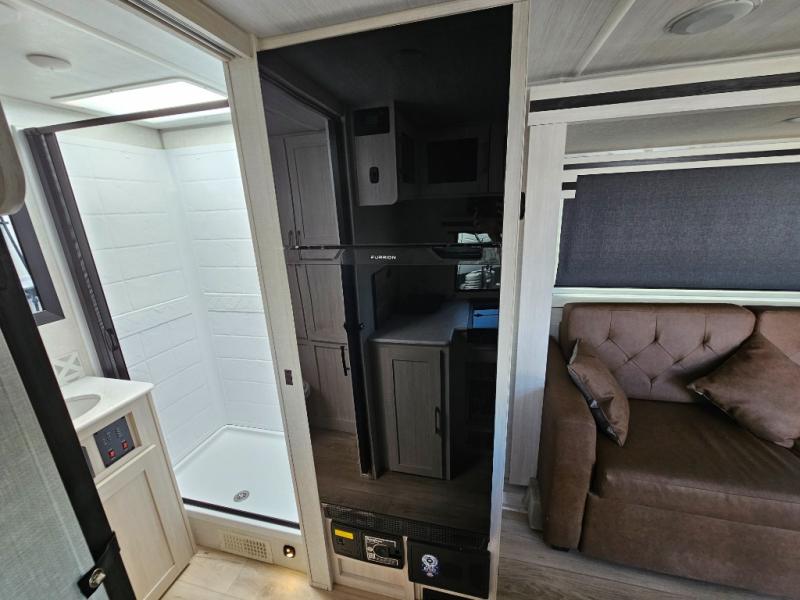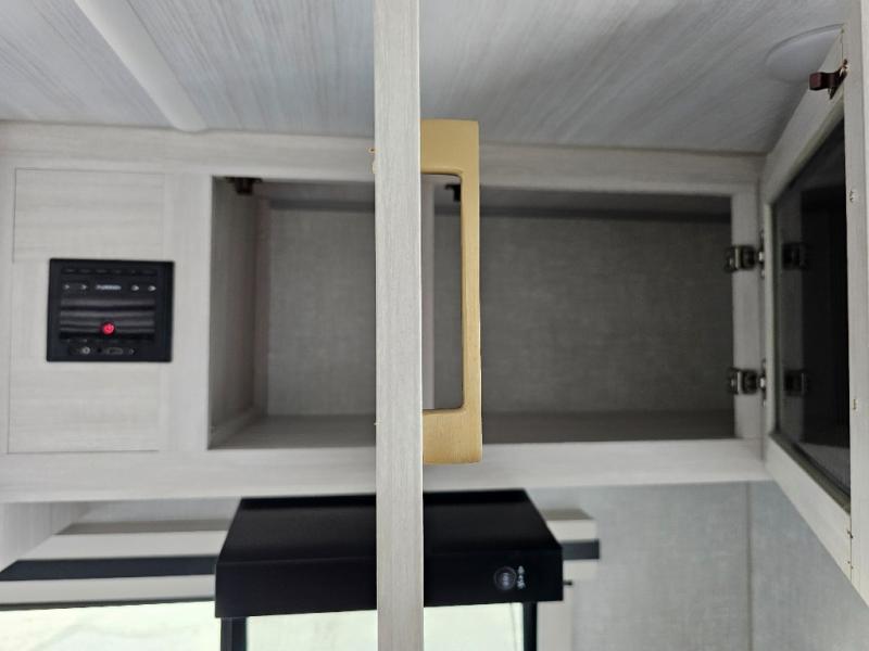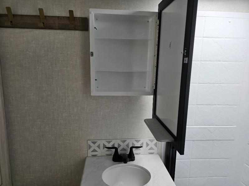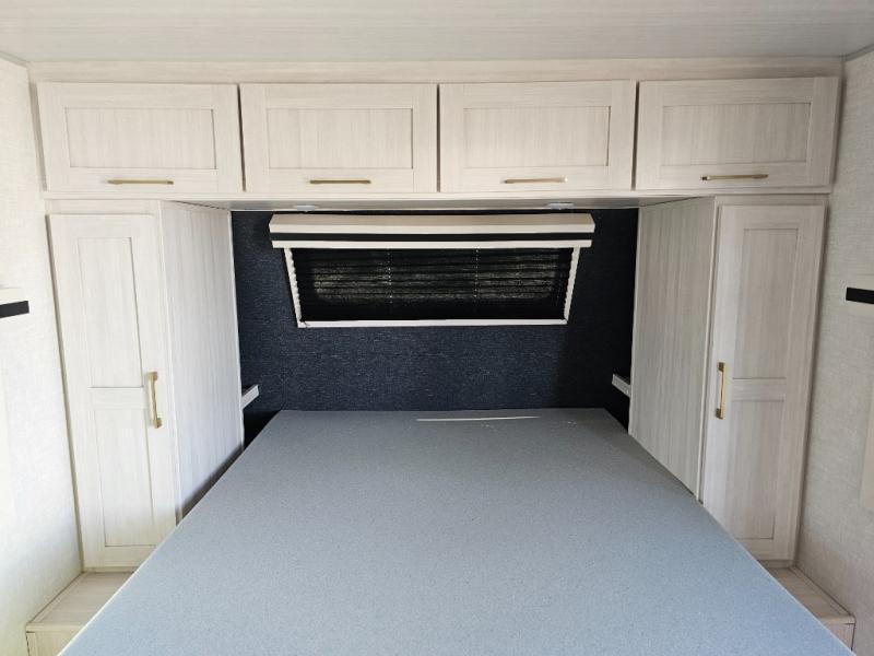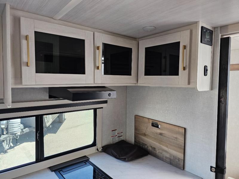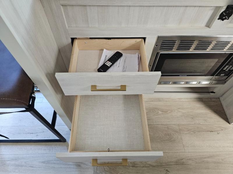 Hit the road with this Surveyor Legend trailer in tow, featuring a tri-fold sofa slide for added seating, sleeping, and interior space. You will also love the breakfast bar with two stools for dining. The queen bed up front will provide a great night's rest, and there is overhead storage at the head of the bed along with dual wardrobes for your things on either side. If you have an overnight guest or two little ones, they can sleep on the tri-fold sofa slide, and everyone will appreciate the privacy of the full rear bath. You will have everything needed each day to prepare meals, including a two burner cooktop, a convection microwave, and refrigerator for your perishables. The pass-through storage will be be perfect for fishing poles, outdoor chairs, yard games, plus there is additional outdoor storage along the rear curbside for your hiking gear!