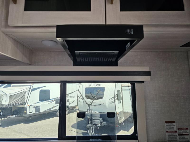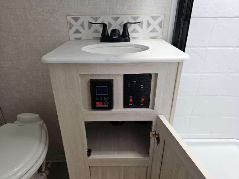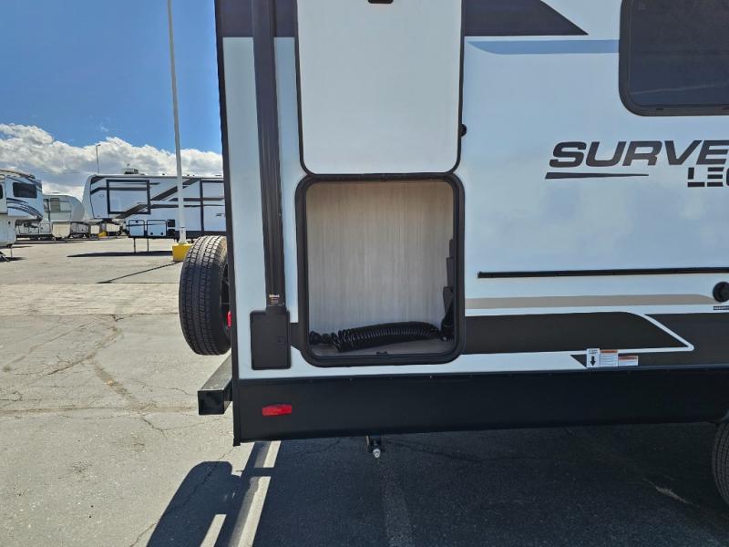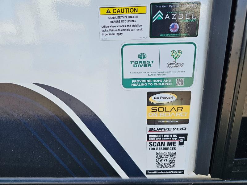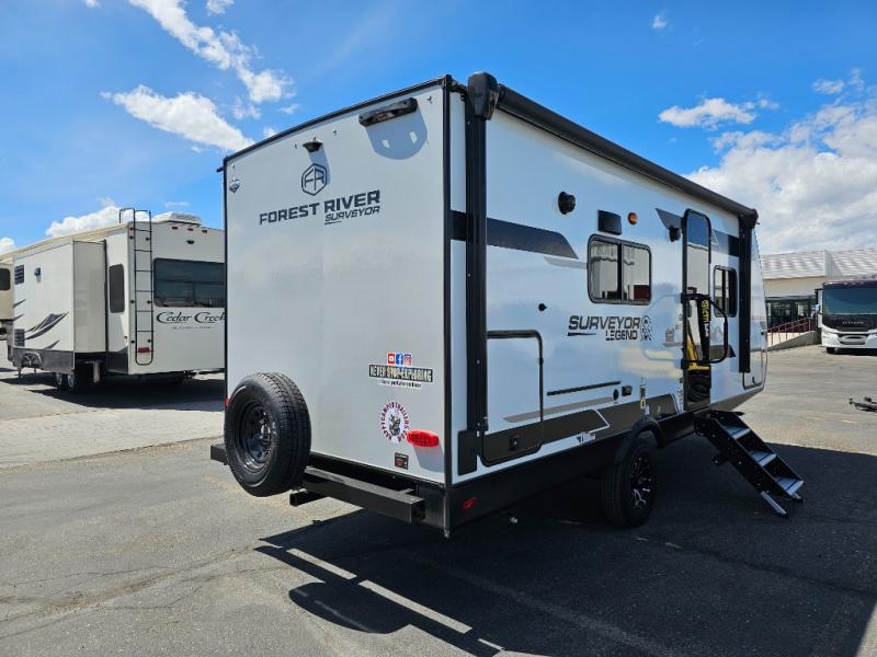 With any Surveyor Legend travel trailer by Forest River you will enjoy quality craftsmanship, convenient amenities, and at-home comforts. The Azdel composite walls provide a longer-lasting trailer, and the power tongue jack with a hitch light will get you back on the road in no-time. There are also Goodyear tires and a tire pressure monitoring system for hassle-free towing. Each model includes the Surveyor Legend Package that comes standard with oversized dinette storage access doors, front slam latch baggage doors, plus an automotive style tinted front windshield. You'll appreciate camping with a tankless water heater for endless hot showers, a 2" accessory hitch to bring bikes along, plus carpet-free interiors and a central vacuum system for easy clean up.