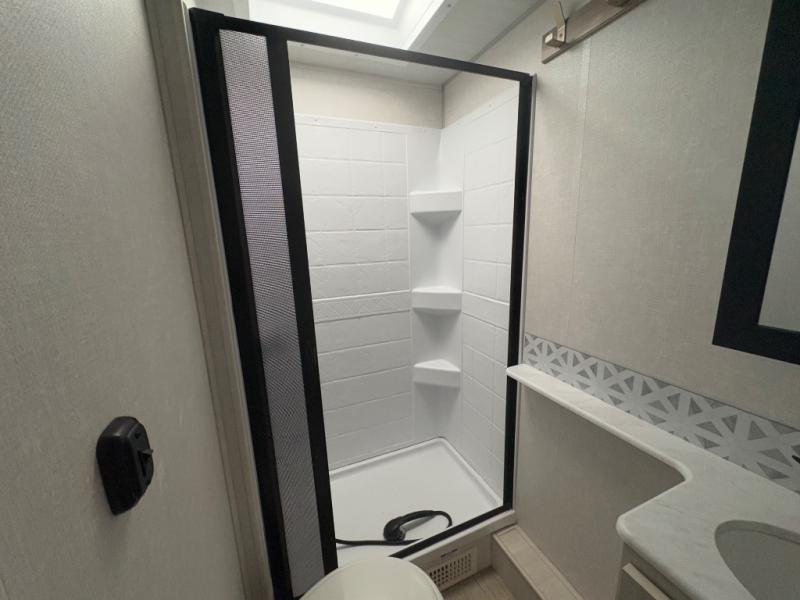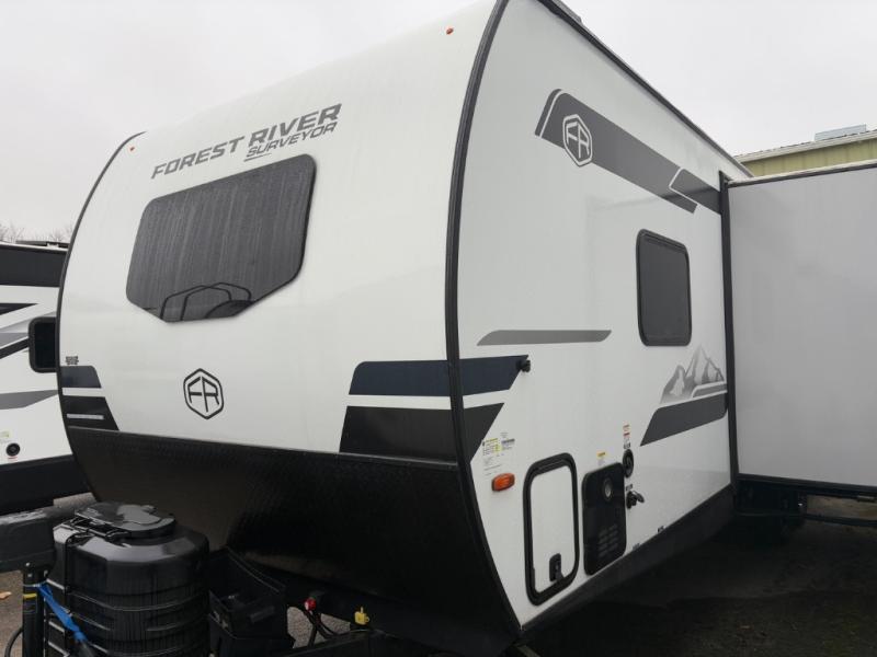 With any Surveyor Legend travel trailer by Forest River you will enjoy quality craftsmanship, convenient amenities, and at-home comforts. The Azdel composite walls provide a longer-lasting trailer, and the power tongue jack with a hitch light will get you back on the road in no-time. There are also Goodyear tires and a tire pressure monitoring system for hassle-free towing. Each model includes the Surveyor Legend Package that comes standard with oversized dinette storage access doors, front slam latch baggage doors, plus an automotive style tinted front windshield. You'll appreciate camping with a tankless water heater for endless hot showers, a 2" accessory hitch to bring bikes along, plus carpet-free interiors and a central vacuum system for easy clean up.