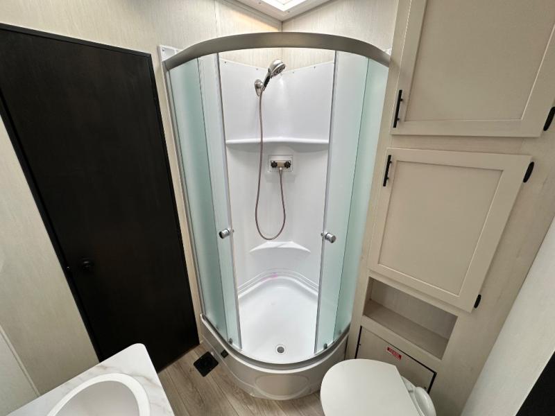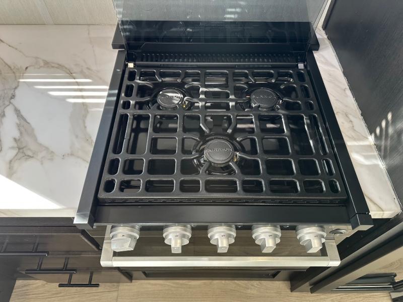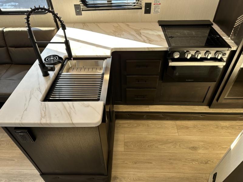 With any Vengeance Rouge SUT toy hauler travel trailer or fifth wheel by Forest River you can bring along your favorite ride-on toys, while still enjoying at-home comforts. Each one is built with a seamless roofing membrane with heat reflectivity and an armored underbelly tank enclosure for added strength and durability, and the 8' 6" wide body construction means you can bring along your favorite ride-on toys. Inside, you'll find a 1000 watt microwave and a three burner cooktop with an oven, seamless countertops, plus zebra shades that filters light and are blackout capable. These toy haulers also include 12V heat pads on all the holding tanks, a 15,000 BTU A/C unit, and many more amenities to make camping easier than ever.