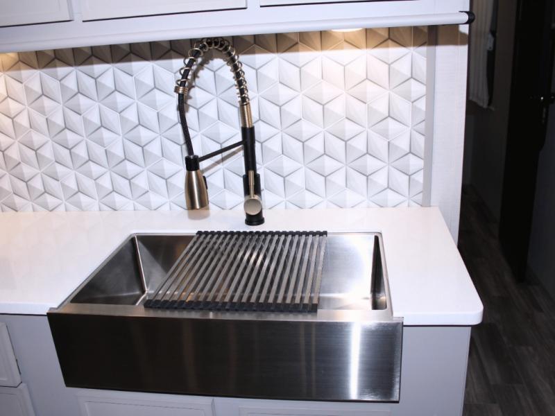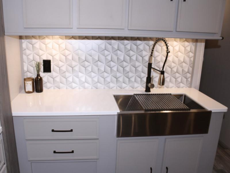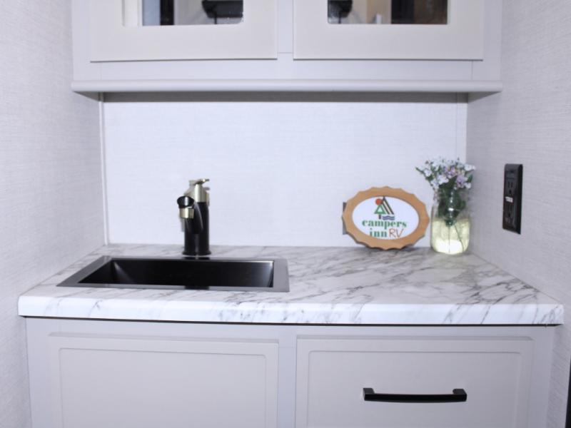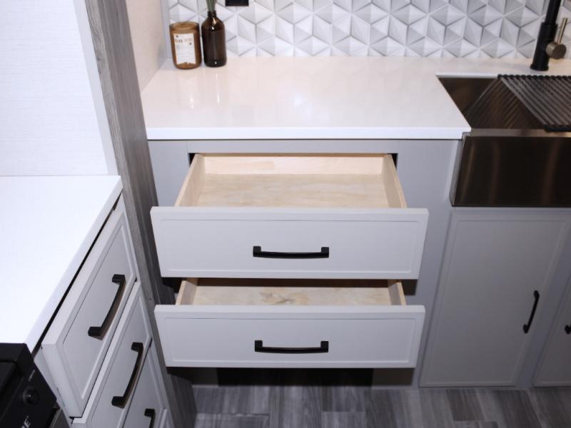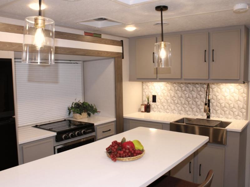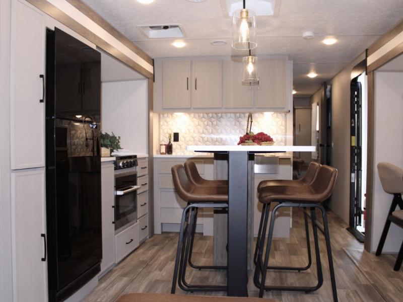 Cooking is a breeze with a center kitchen island, residential appliances, and plenty of counter space. Whether you're making breakfast before a hike or a full dinner after a long travel day, this kitchen gives you functionality and style.