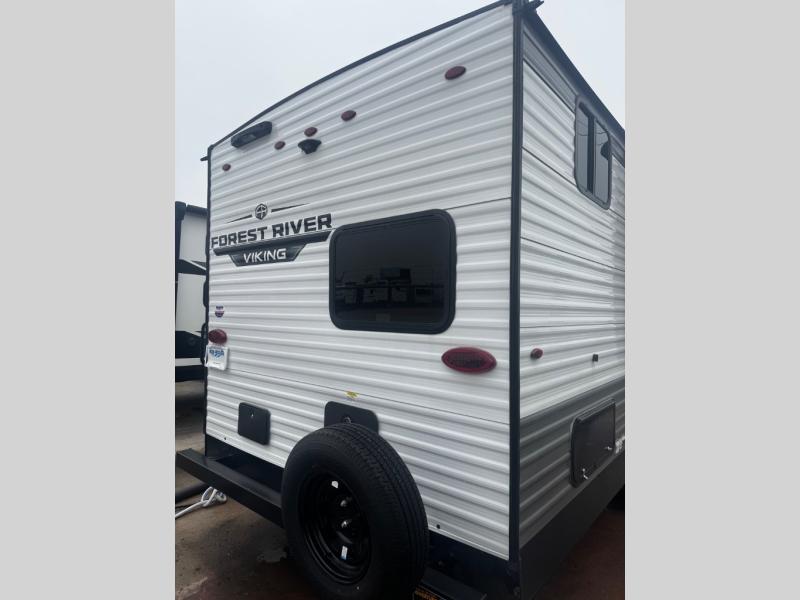 With any Forest River Viking 6K Series travel trailer, you can experience affordable camping with your family with the same comforts and quality as the bigger trailers. Each is built on a BAL NXG frame with supreme powder coating, and features an 8' wide frame with an aerodynamic engineered front profile for easy towing. The interior offers stylish kitchen backsplash, upgraded cabinets, a foot flush toilet, plus USB charging ports for your phone or tablet. Available options feature a power tongue jack, a fireplace with a remote, a solar package and more!