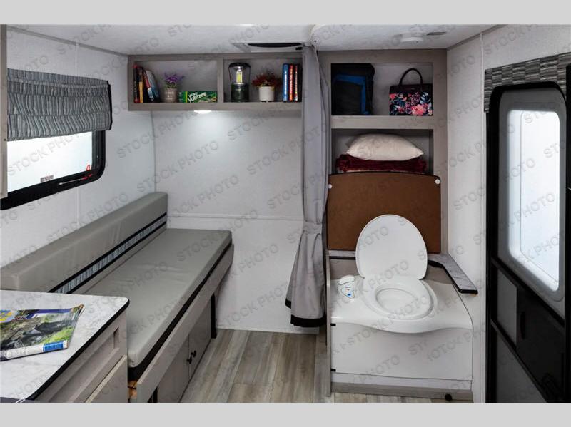 When you want to explore, choose this travel trailer for your basic off-road adventure needs and a bit more by offering you a 54" X 74" flip-up bed with storage beneath, and gaucho seating that pulls out into a bed for an additional camper at night. There is front and rear overhead cabinetry for storage, and a cassette toilet for added convenience especially at night. A rear hatch camp kitchen provides a place for you to create meals and snacks while you explore. There is a slide-out griddle and grill combo cooktop, a 3.3 cu. ft. 12-volt refrigerator for your cold items, a single sink, and two burner cooktop, plus a microwave oven. A 9' power awning creates a bit of added outdoor living space where you can set up your camp chairs. You can also add an optional roof-top tent for additional sleeping.