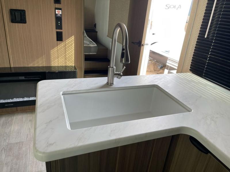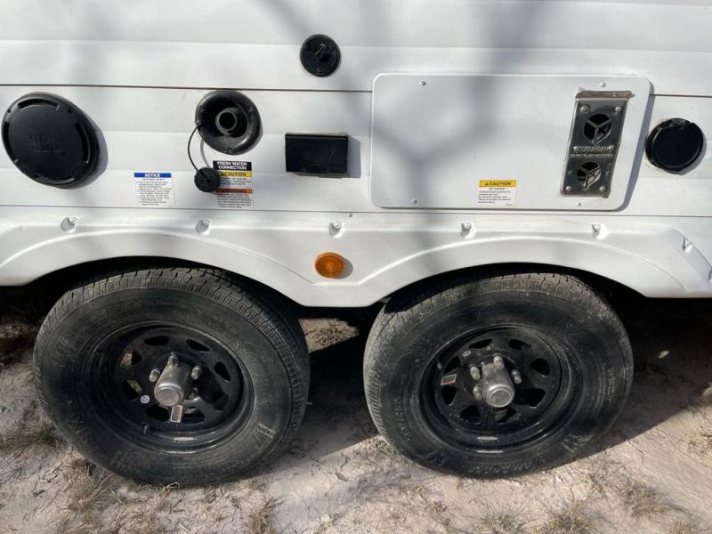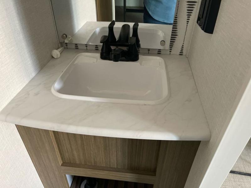 What I liked most: Good amount of exterior storage with larger area in the rear of RV. Power Jacks. Room to walk around master bed. Place for shoes when you walk in. Two double bunks. Surround type speakers in living area. Storage under couch. End cap storage. Bathroom sink separate from toilet area.