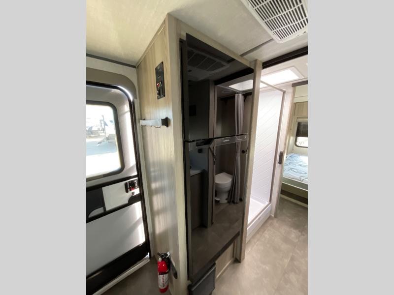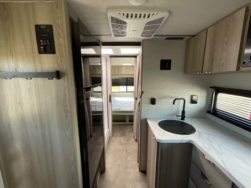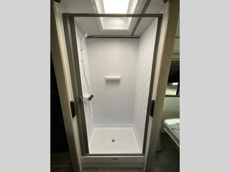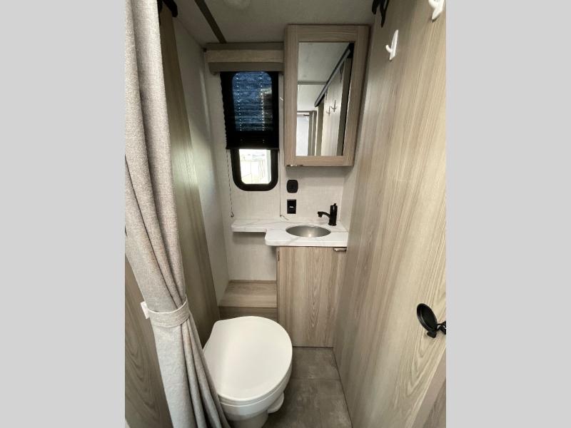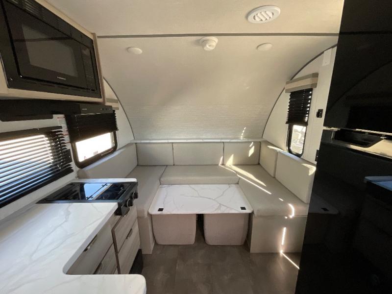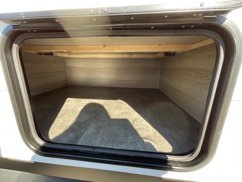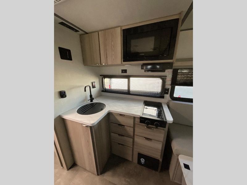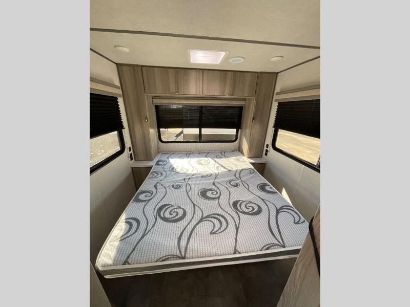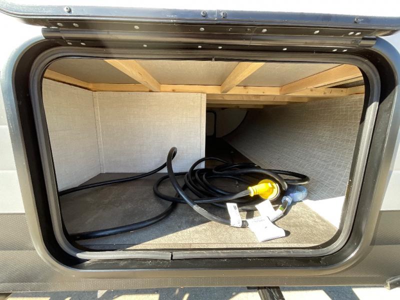 Pack your bags and head to the campground in this cozy travel trailer. Once you arrive you can make lunch on the outside kitchen, and there is a 15' power awning with LED lights to enjoy an outdoor living space. The U-shaped dinette inside will be perfect for meal times and game night, plus this space can double as additional sleeping space if you have guests. There is a separated bath, with the toilet and sink in one room, and the shower across the hall so two people can freshen up at the same. And don't overlook the rear bedroom with a queen bed, dual wardrobes, plus an overhead cabinet for your things.