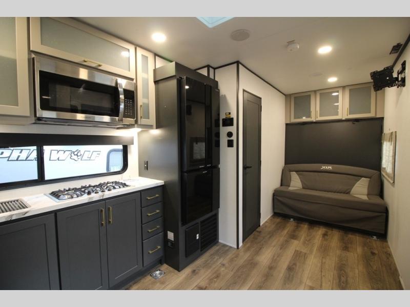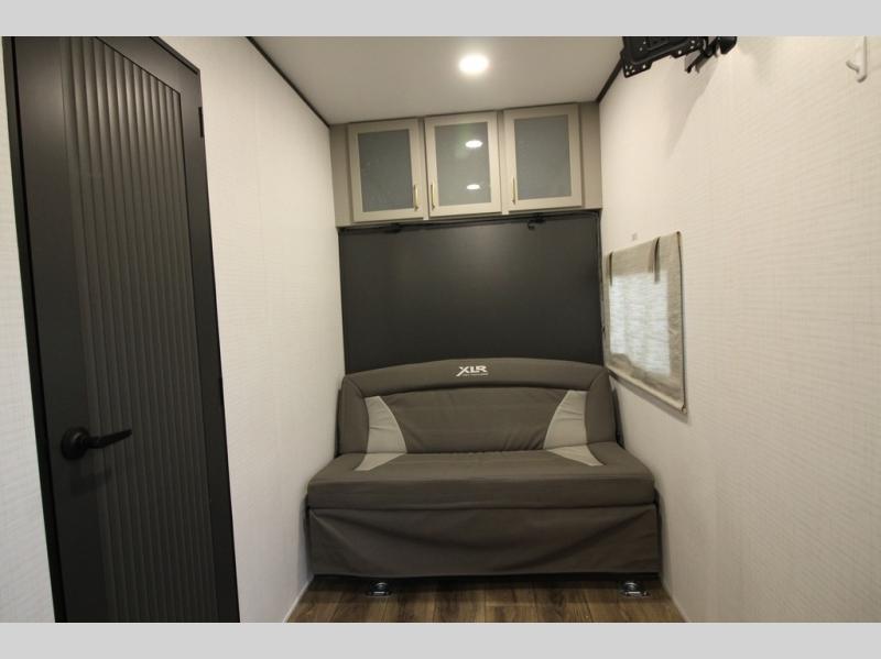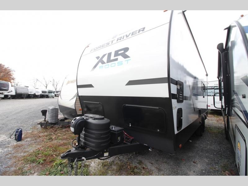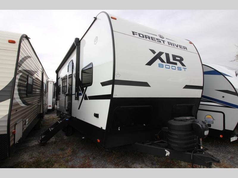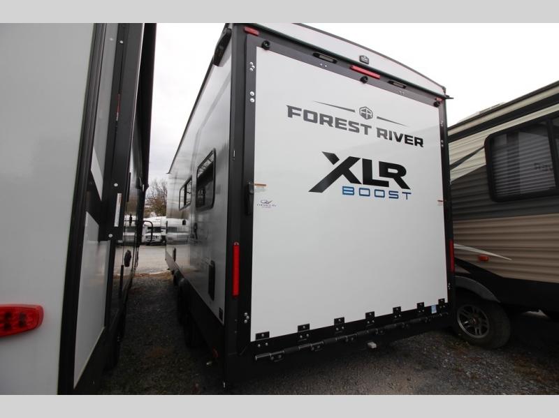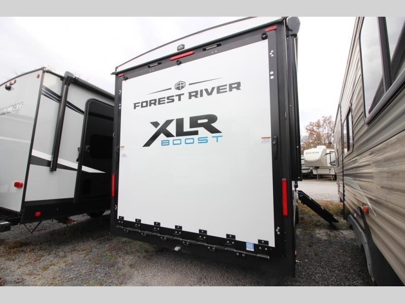 Boost into action camping with one of these Forest River XLR Boost fifth wheel toy haulers or travel trailer toy haulers! The 8' 5" wide body design not only provides ample interior space, but also packs in all of the luxurious features to make your trips great. There is fiberglass flooring insulation, a 35K BTU furnace and built-in vents within the mandatory Climate Comfort Package so you can camp all year around. The Convenience Package is also mandatory, and includes a tankless water heater, a French door black refrigerator and more features to make each trip accommodating. You will love the decorative kitchen backsplash inside, as well as a residential style kitchen faucet, a bath vent fan, and a USB charging station to keep your electronics charged and ready to go.