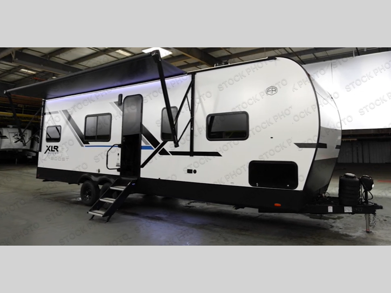 Boost into action camping with one of these Forest River XLR Boost fifth wheel toy haulers or travel trailer toy haulers! The 8' 5" wide body design not only provides ample interior space, but also packs in all of the luxurious features to make your trips great. There is fiberglass flooring insulation, a 35K BTU furnace and built-in vents within the mandatory Climate Comfort Package so you can camp all year around. The Convenience Package is also mandatory, and includes a tankless water heater, a French door black refrigerator and more features to make each trip accommodating. You will love the decorative kitchen backsplash inside, as well as a residential style kitchen faucet, a bath vent fan, and a USB charging station to keep your electronics charged and ready to go.