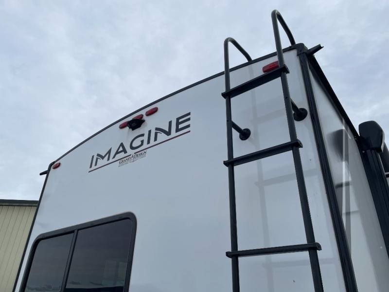 Just imagine leaving the world behind and secluding yourself away with your favorite people in your Grand Design Imagine travel trailer! The Imagine has been designed to enjoy extended season camping and includes a high-capacity furnace, a heated and enclosed underbelly with suspended tanks, a designated heat duct to the subfloor, and a high-density roof insulation with attic vent. You'll have maximum head room on the interior with 81" radius ceilings, and large panoramic windows to let in natural lighting. The exclusive drop-frame pass-through storage compartment is going to allow you to bring along lots of equipment, and the universal docking station is an all-in-one location for utilities and hook-ups. You'll also have oversized tank capacities so that you can fill and empty your tanks less often.