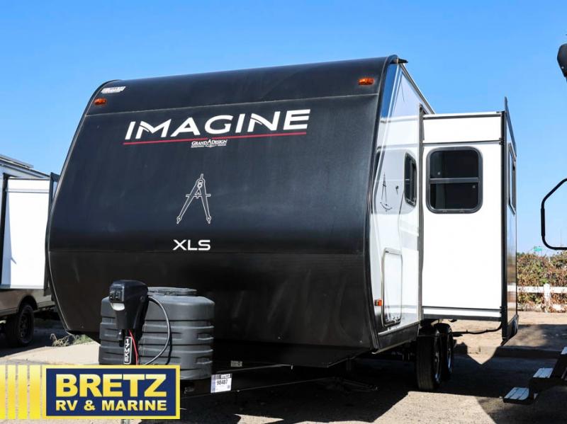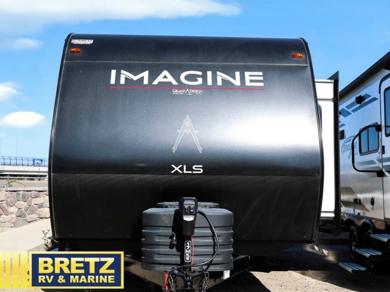 Let your imagination run wild with the possibilities that the Grand Design Imagine XLS travel trailer can provide! The Imagine XLS has been built with oversized tank capacities, an extra-large 2" fresh water drain valve, a ducted A/C system, a power tongue jack, and a heated and enclosed underbelly with suspended tanks. There is a designated heat duct to the subfloor and a residential ductless heating system throughout. For outdoor adventures, the electric awning with LED lights will enable you to stay protected, and the Tuff-Ply pass-thru flooring will withstand your many adventures. You will also love the XLS Solar Package that comes with a 200W roof mounted solar panel, a 30 Amp charge controller, a 12V 10 cu. ft. refrigerator, and roof mounted quick connect plugs!
