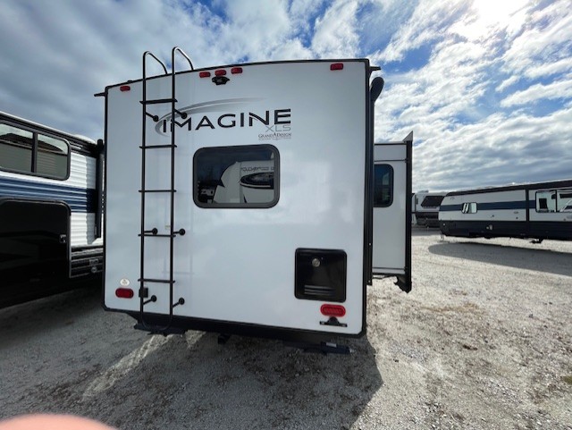 Let your imagination run wild with the possibilities that the Grand Design Imagine XLS travel trailer can provide! The Imagine XLS has been built with oversized tank capacities, an extra-large 2" fresh water drain valve, a ducted A/C system, a power tongue jack, and a heated and enclosed underbelly with suspended tanks. There is a designated heat duct to the subfloor and a residential ductless heating system throughout. For outdoor adventures, the electric awning with LED lights will enable you to stay protected, and the Tuff-Ply pass-thru flooring will withstand your many adventures. You will also love the XLS Solar Package that comes with a 200W roof mounted solar panel, a 40 Amp charge controller, a 12V 10 cu. ft. refrigerator, and roof mounted quick connect plugs!