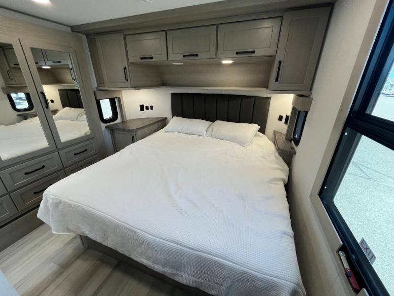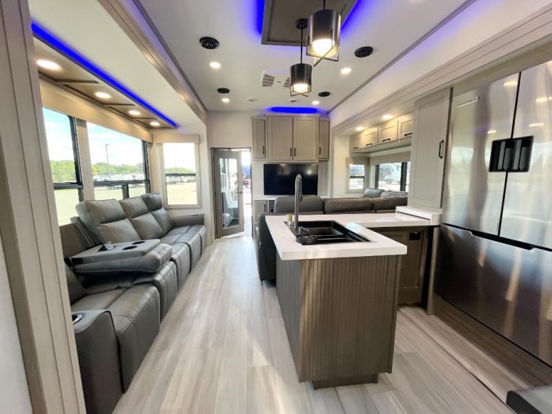 With any Momentum M-Class toy hauler by Grand Design, you will enjoy luxury at every turn! They have been constructed to a superior standard with a thermal roof design, triple insulated main floor and garage floor, and a Rail-Tite underbelly seal that will allow you to camp in all elements. Each model also features an 8' 5" wide body chassis with a wide rail design, no wheel wheels, and a dovetail entry for easier loading. The Stealth A/C system provides maximum cooling power, and the CRE3000 suspension system means you can enjoy a smooth tow each time. You will love the luxurious interior with a professional grade stainless steel cooktop, interior color changing LED accent lighting, a fiberglass shower with a glass door, and solid surface countertops.