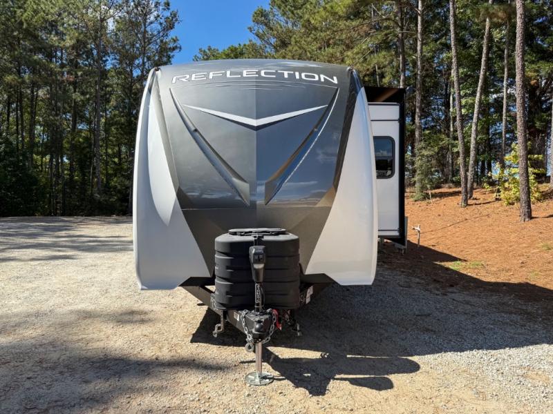 With any Reflection travel trailer by Grand Design, you will have a solar panel for off-grid camping and a 60 amp charge controller and inverter prep, a Universal All-In-One docking station, unobstructed pass-through storage, and Goodyear Endurance tires. Each is constructed of gel coat exterior sidewalls, residential 5" truss rafters, walk-on roof decking, a fiberglass and radiant foil roof and front cap insulation plus laminated aluminum framed side walls, roof and end walls in slide rooms. Head inside to enjoy residential hardwood cabinet doors, premium Congoleum flooring, a spacious shower with a glass door, and many more comforts!