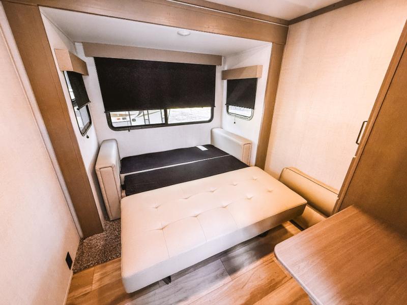 The Reflection 367BHS stands out with its highly desirable bunkhouse layout — perfect for families, guests, or extra storage space for outdoor gear. The rear bunk room provides privacy and flexibility with comfortable sleeping areas that appeal to kids and adults alike.