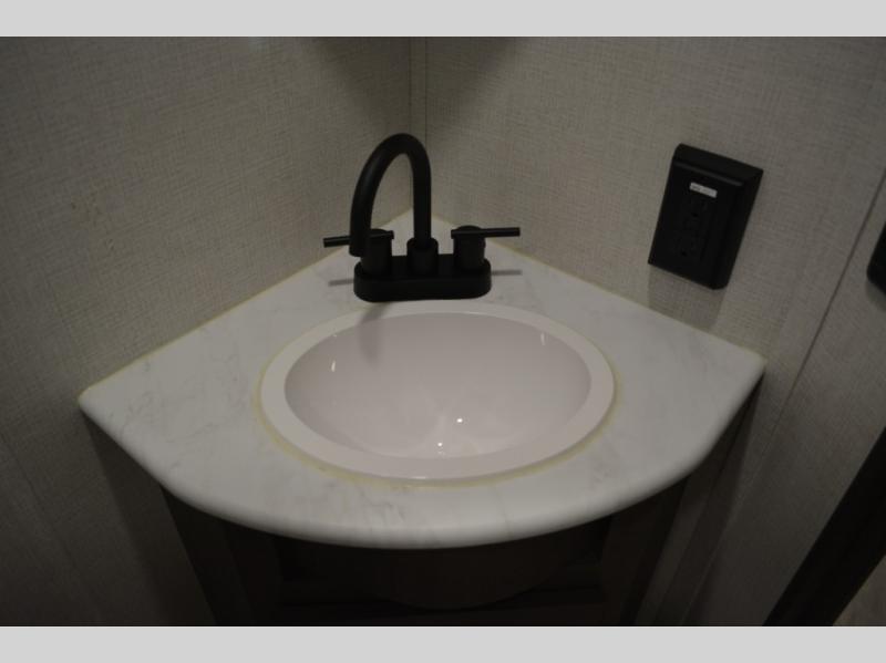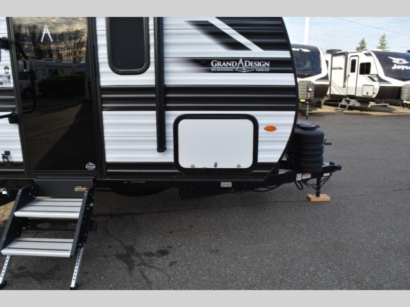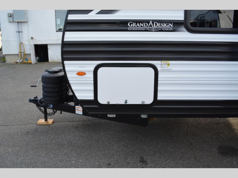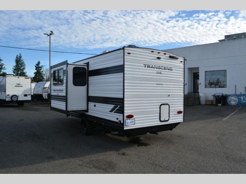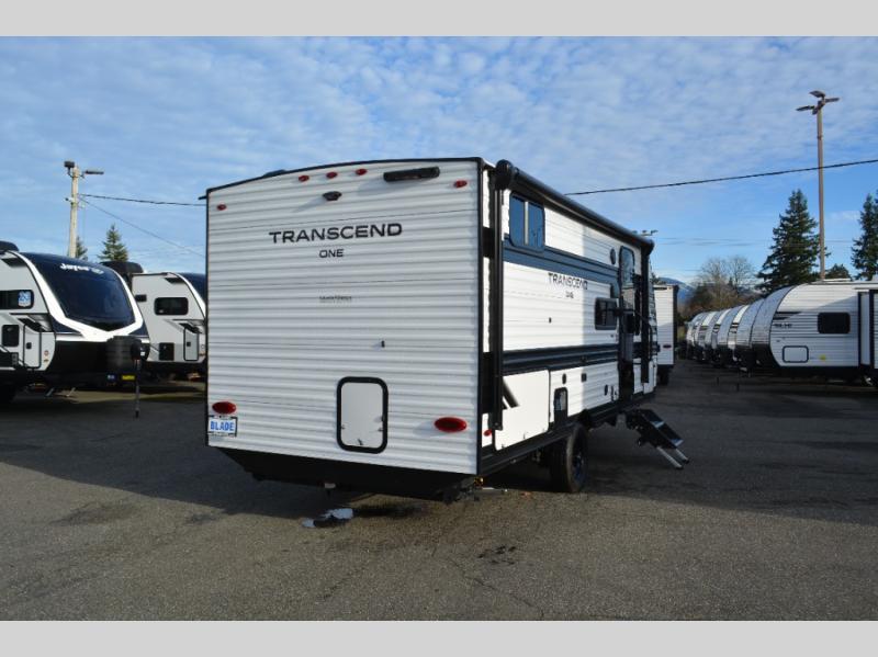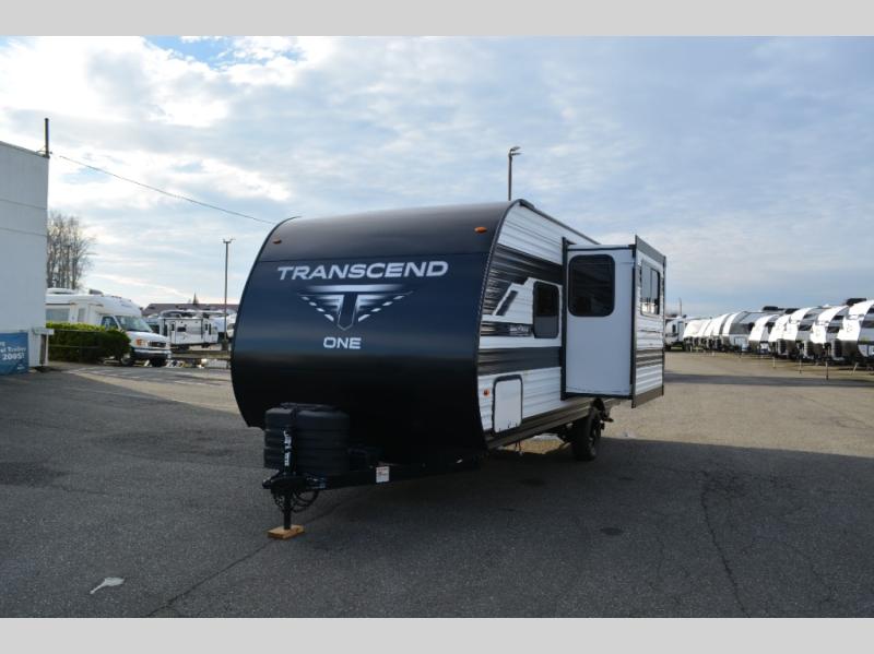 With any Transcend One travel trailer by Grand Design, you will enjoy lightweight towing thanks to their single-axle. There are many interior comforts to make camping easier than ever, such as recessed lighting, residential countertops, and a 6' 6" interior height. Each model is constructed with a heated and enclosed underbelly with suspended tanks, a moisture barrier floor enclosure, and Thermofoil over the roof and front cap for added protection. And a JBL sound system will let you listen to tunes as you visit under the power awning with a Fusion light!