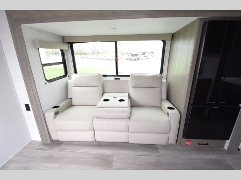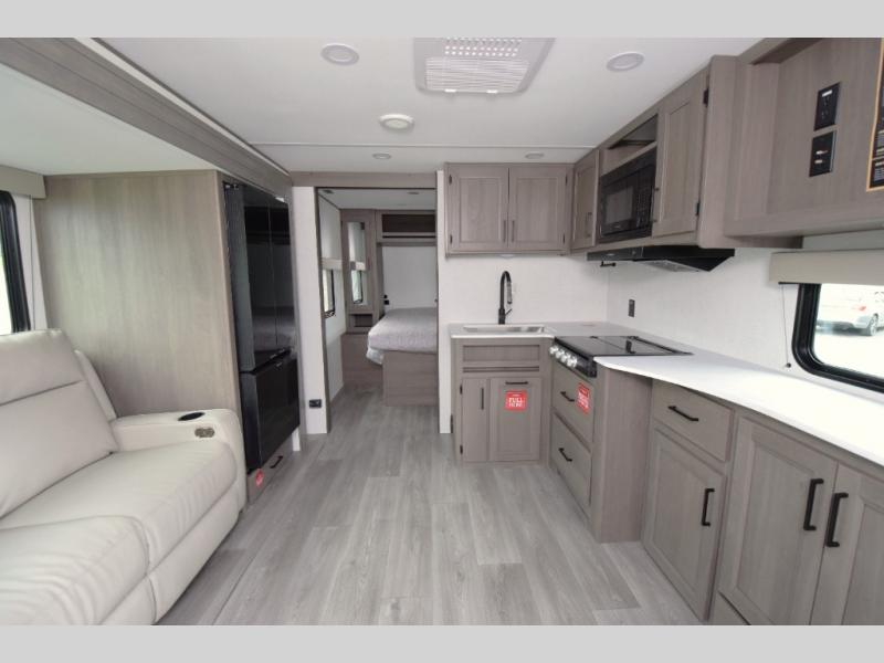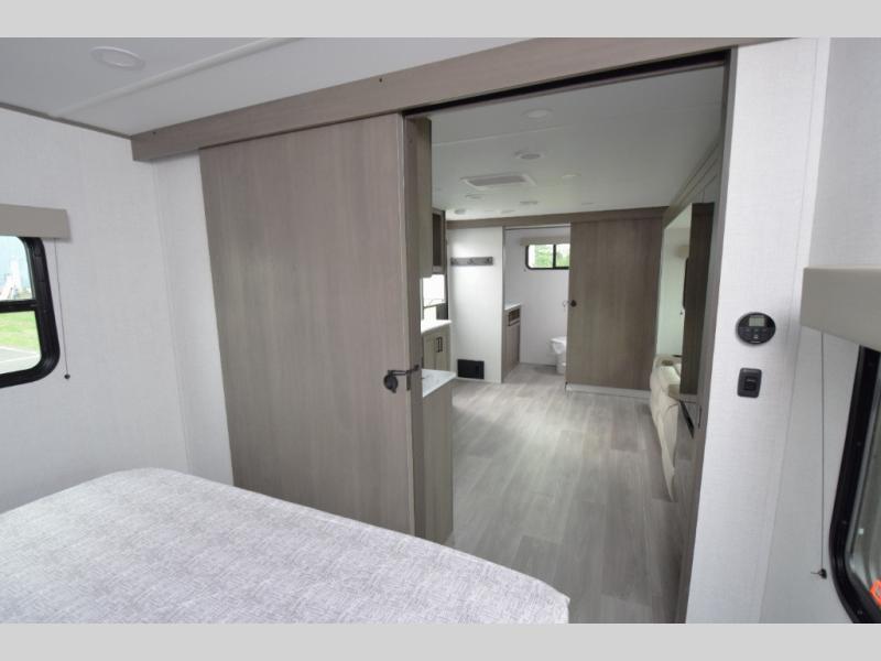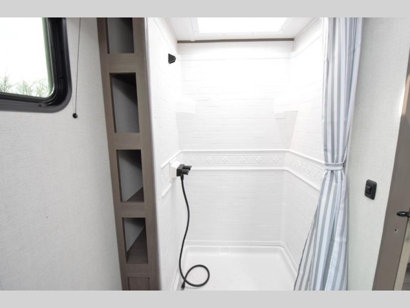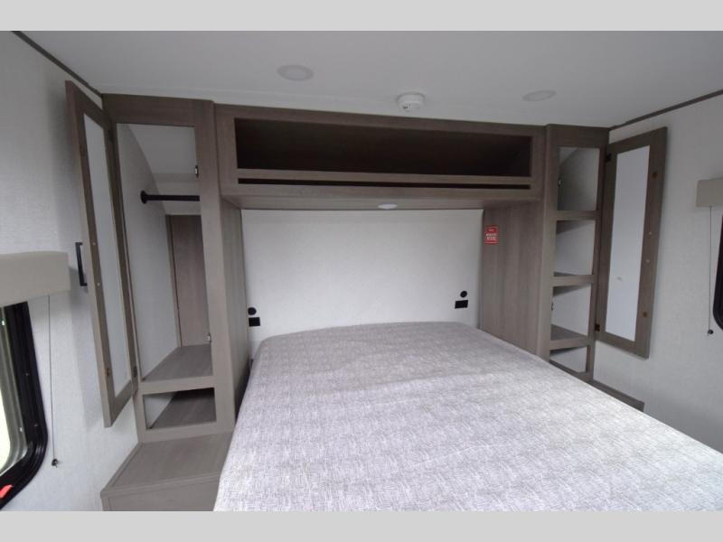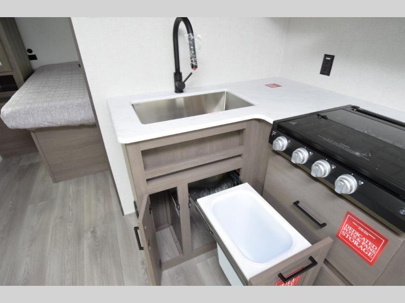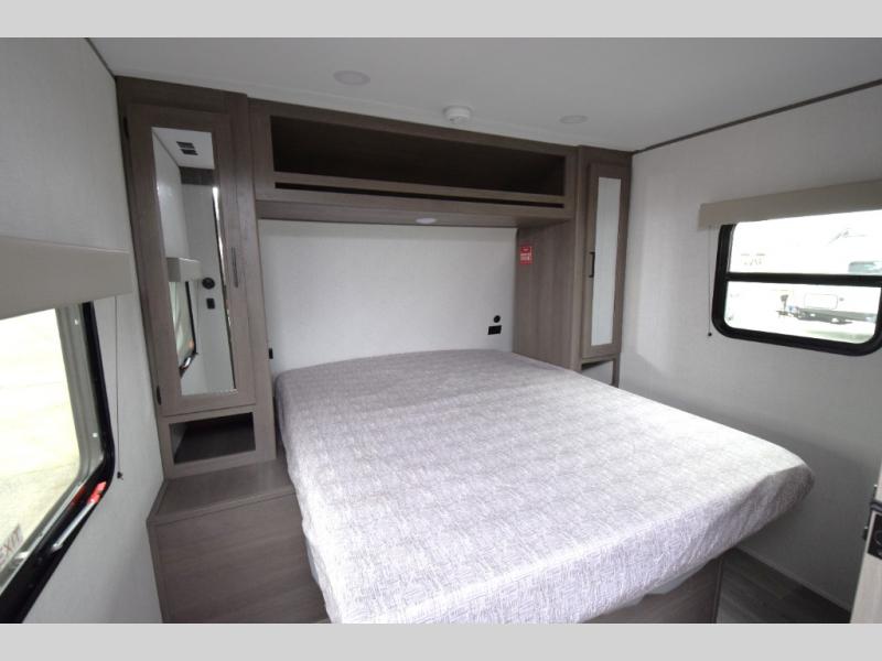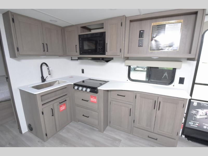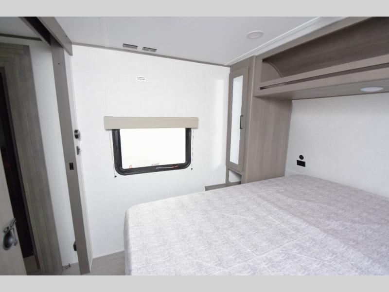 The Transcend Xplor 22RBX is designed for effortless camping with a power tongue jack, all-in-one utility center, and detachable power cord with LED light for easy setup. Inside, upgraded residential furniture, residential countertops, and cabinet doors make you feel at home on the road.