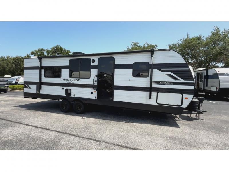 The customer-focused, quality-built Transcend Xplor travel trailers by Grand Design are your ticket to fun and adventure. You will appreciate the power tongue jack when it comes time to set up, as well as the all-in-one utility center and the detachable power cord with an LED light. These models include many outlets throughout, USB ports to charge your gadgets, and a JBL exterior speaker to listen to your favorite tunes. The interior of the Transcend Xplor will have you feeling right at home with upgraded residential furniture, residential countertops, residential cabinet doors, and the list goes on!