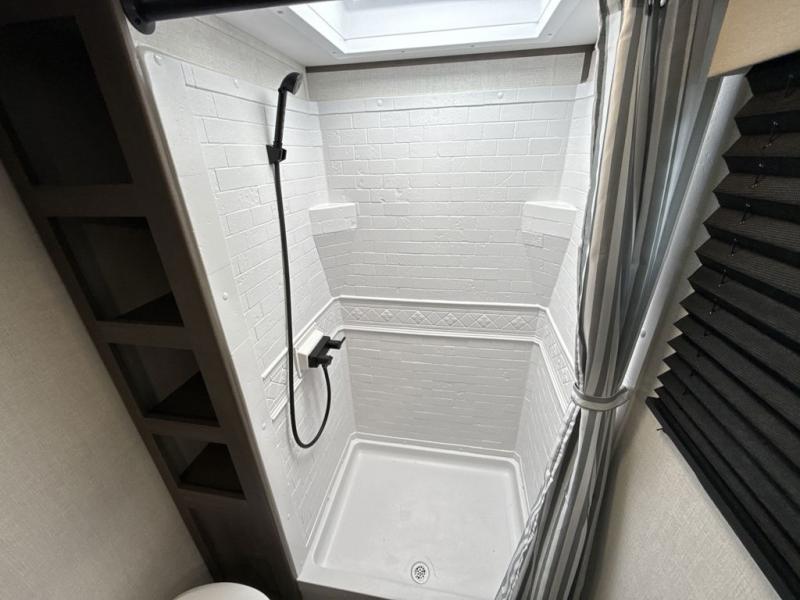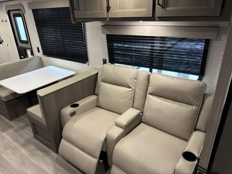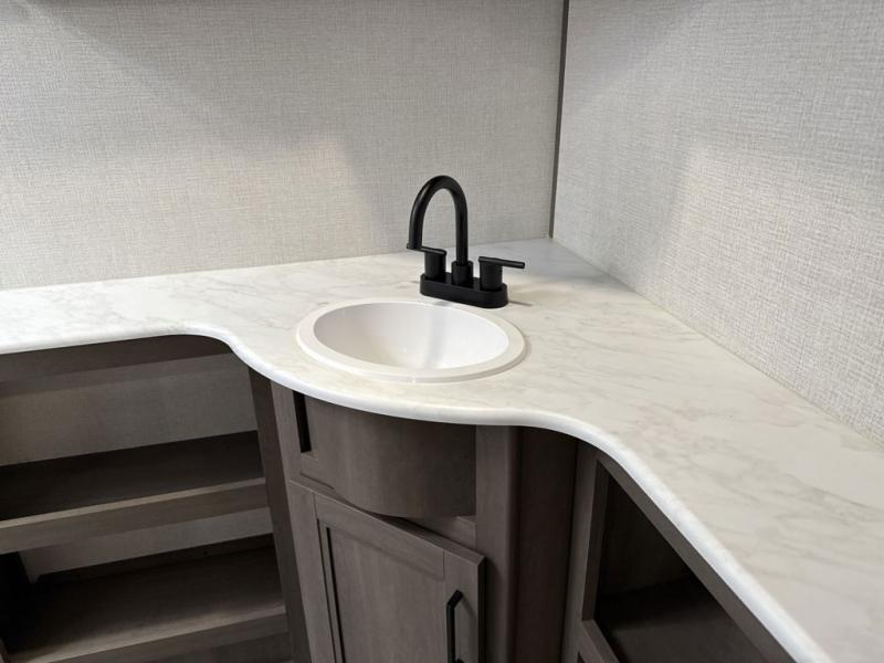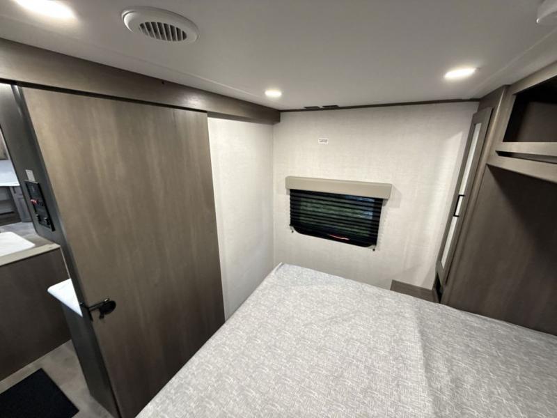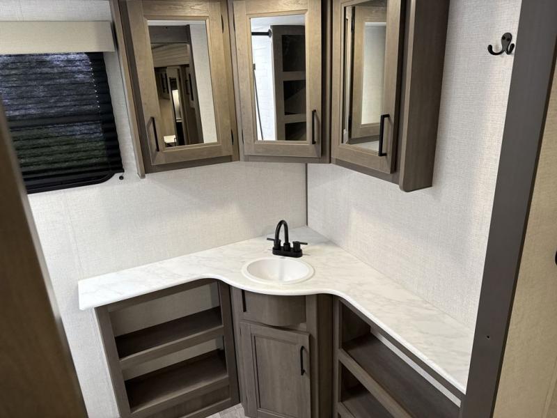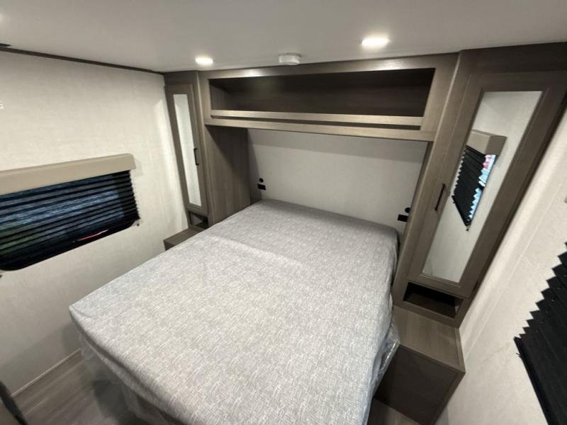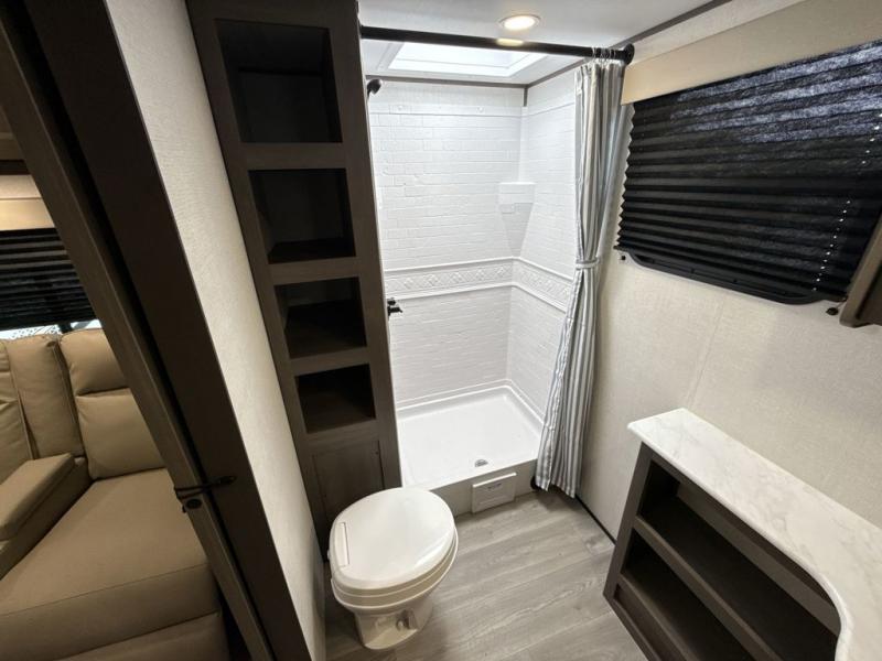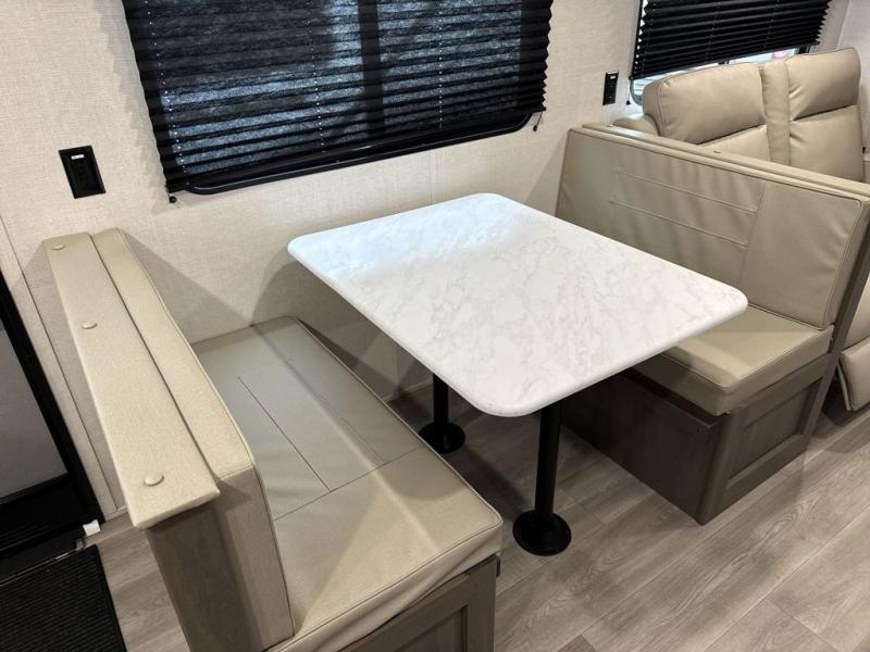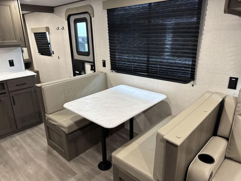 Your search for the perfect couple's trailer is over with this RV in tow! You will enjoy your own private bedroom up front with a queen bed, overhead storage, and TV prep if you choose to bring along your own television. The spacious full rear bath includes a linen closet and a walk-in shower to easily clean up each day. Relax on the 60" sleeper sofa after a long day outdoors, or you can choose the optional theater seating if you don't need additional sleeping space. The booth dinette can also be used for an overnight guest or two little ones. This model also includes plenty of storage space and plenty of counter space to prep and cook at-home meals! Finally relax under the shade of the massive 19' awning.