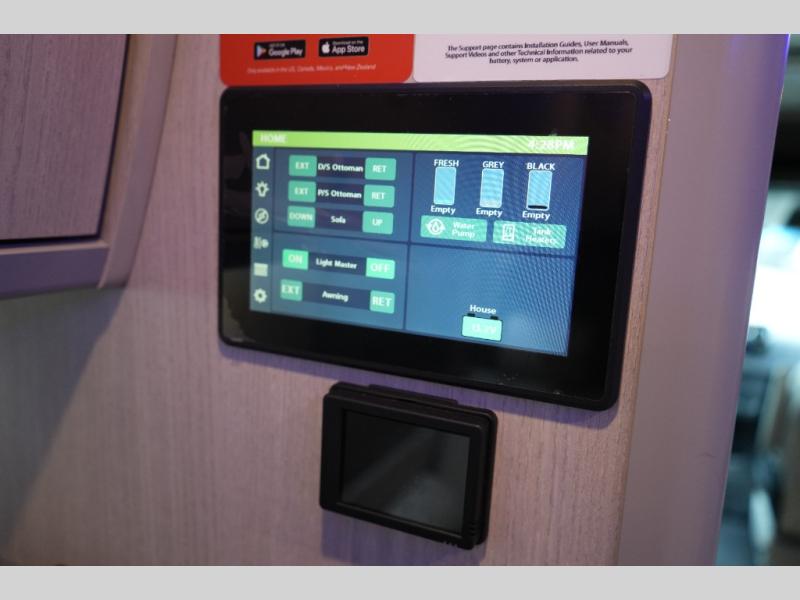 One of the Strada-ion’s standout features is the advanced Lithium-ion Power Package, delivering clean, quiet, and reliable energy without a generator. It includes Lithionics lithium batteries (12V), integrated battery management, a 280 AMP auxiliary alternator with wakespeed regulator, and a 3,000W Xantrex inverter—perfect for off-grid adventures.