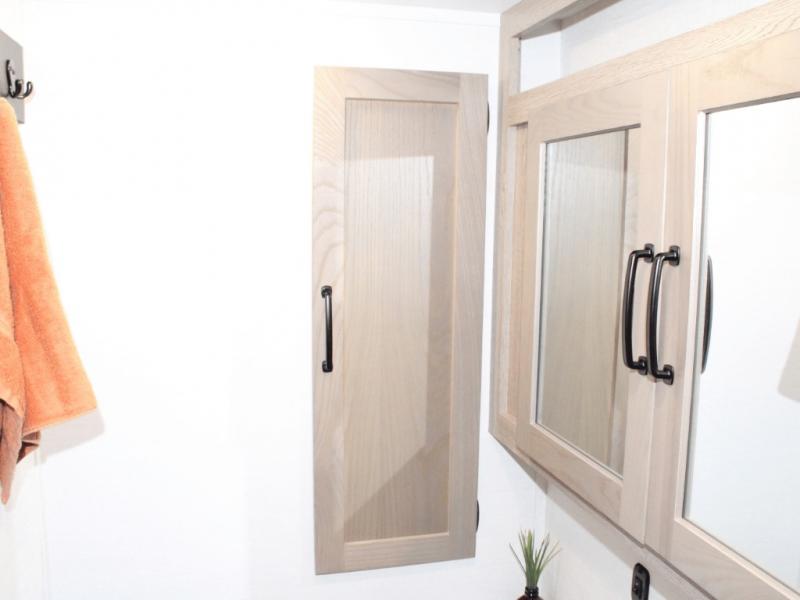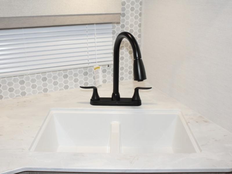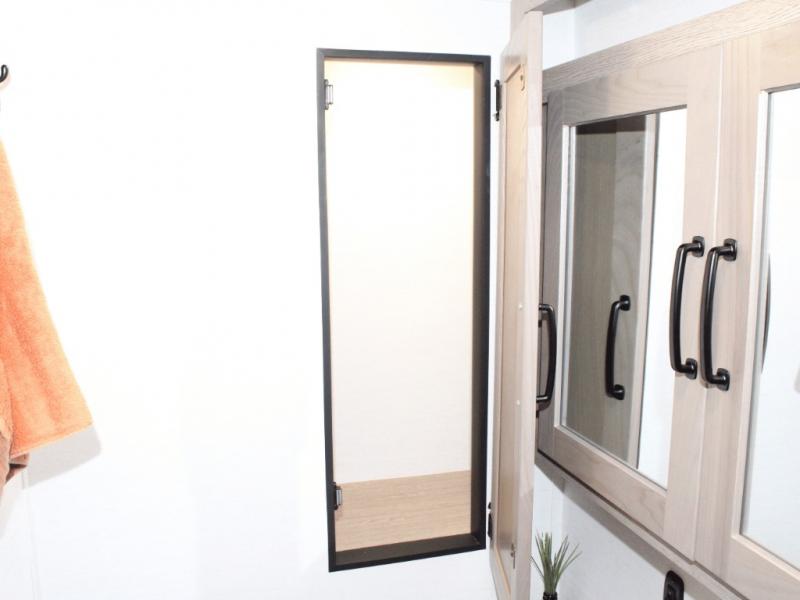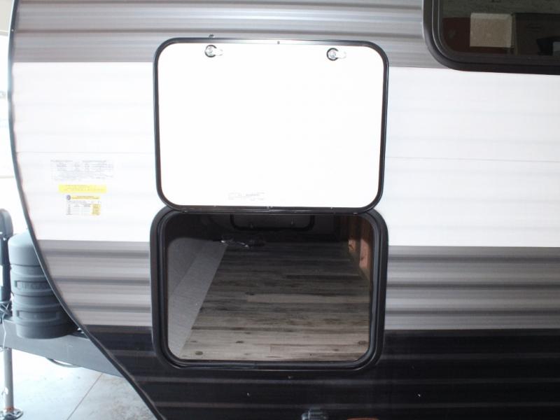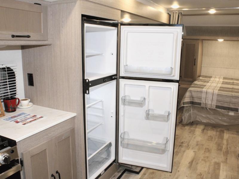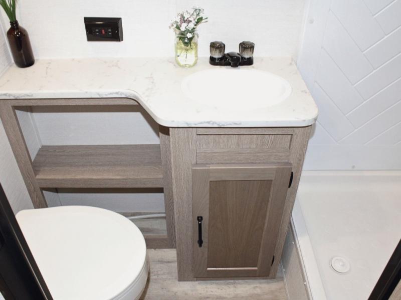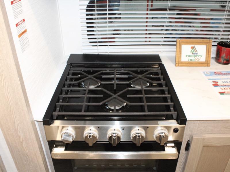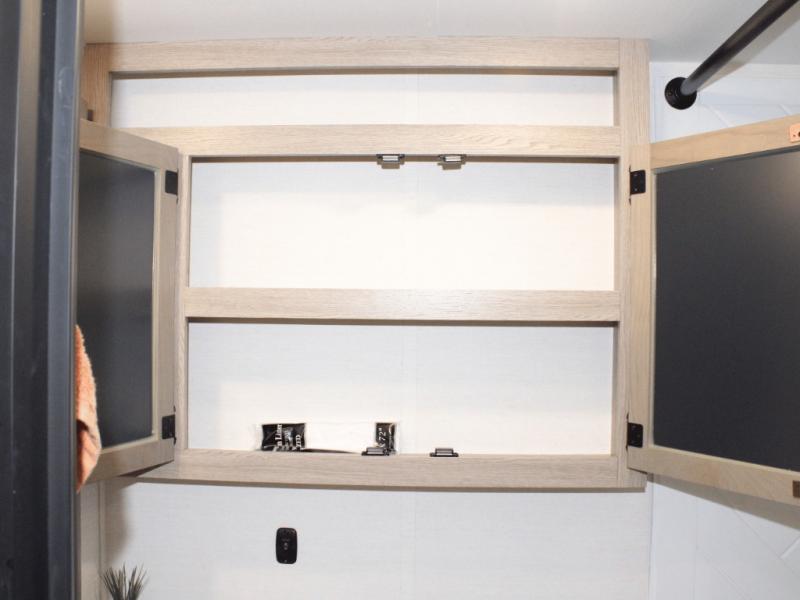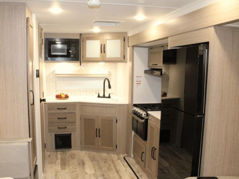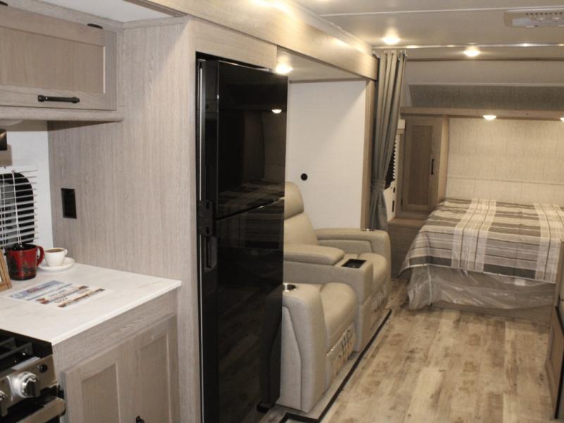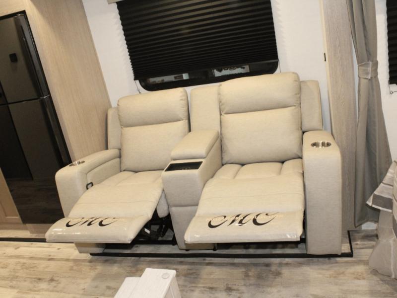 Enjoy modern amenities such as a 13,500 BTU A/C, tankless water heater, central control panel, and multiple USB ports for all your devices. Inside, the warm atmosphere is enhanced by radiant LED lighting, designer kitchen backsplash, pleated privacy shades, and craft-made cabinetry, creating a stylish yet comfortable living space.