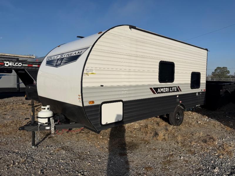 If you're looking for an affordable, lightweight travel trailer, you've found it in the Ameri-Lite Super Lite by Gulf Stream. These models may be lighter in weight, but they don't skimp out on comfortable features. Each unit includes high-performance vinyl flooring throughout, a white kitchen sink, craft-made cabinetry with designer pulls, plus fabric-wrapped box valances to make you feel right at home. You'll enjoy the 6' 8" interior height, wood ceiling trim, multiple USB ports, and more features included within the Camping Package. These models also include a tankless water heater, a central control panel to control your unit's functions, plus plenty of safety features you are sure to appreciate for your family. You can't go wrong with an Ameri-Lite Super Lite travel trailer. Choose your favorite floorplan today!