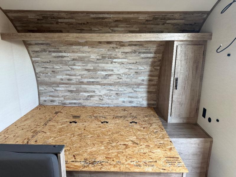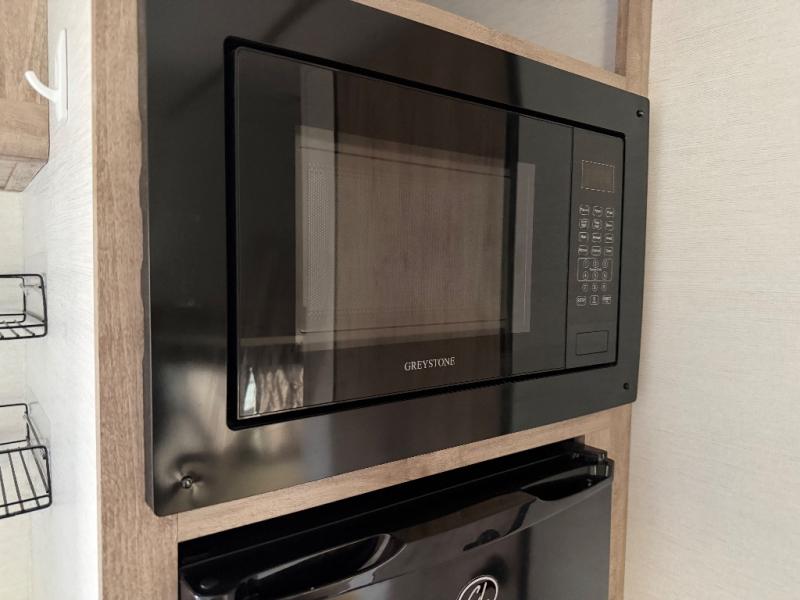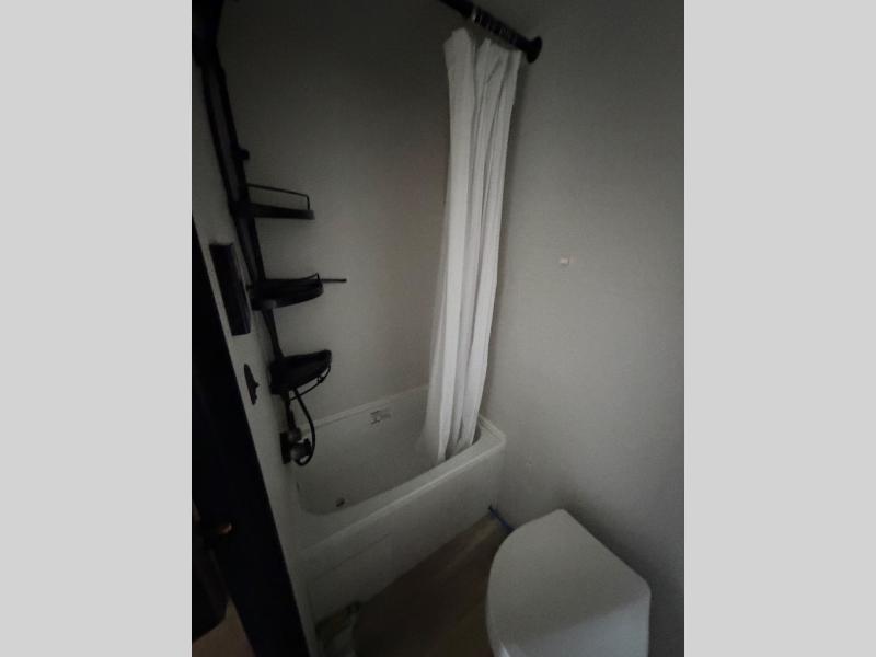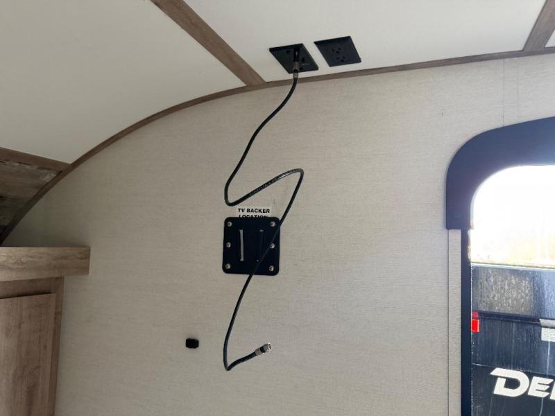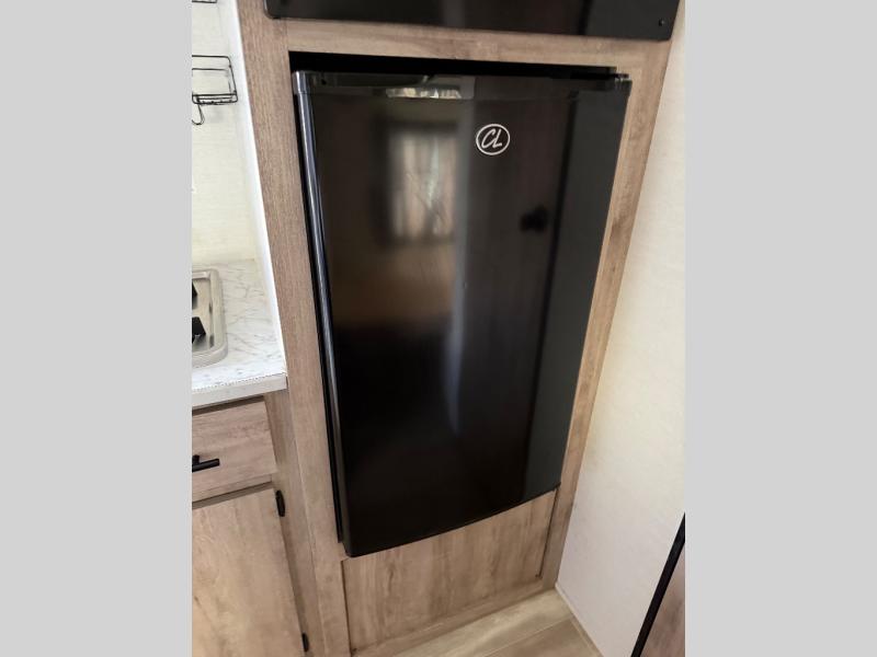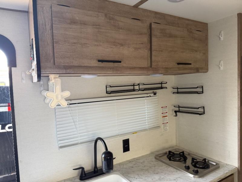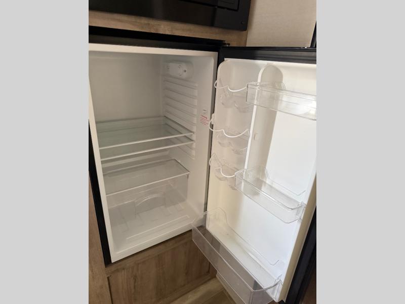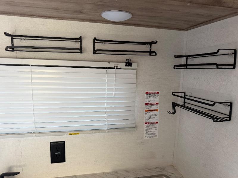 It's easier than ever to enjoy the camping lifestyle with this lightweight travel trailer. There are bunk beds for your guests or little ones, a front bed for you, plus a booth dinette that can double as dining and sleeping space. The private toilet and shower will allow you to stay clean throughout each trip, and since the sink is at the kitchen counter, someone can brush their teeth while the other showers before bed. You will love the fireplace included in this model for a more at-home feel, or you just might find yourselves outdoors under the power awning most of the day!