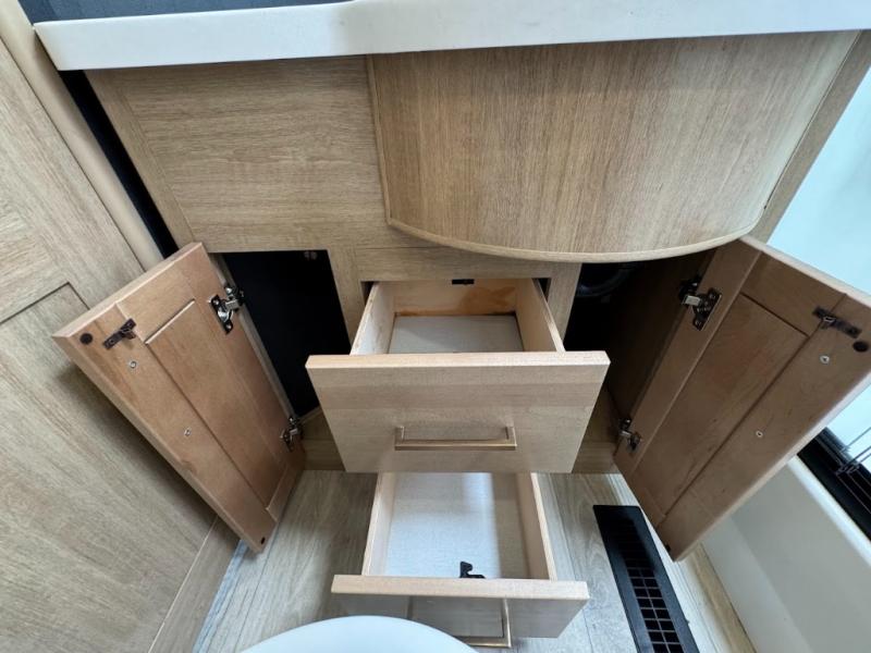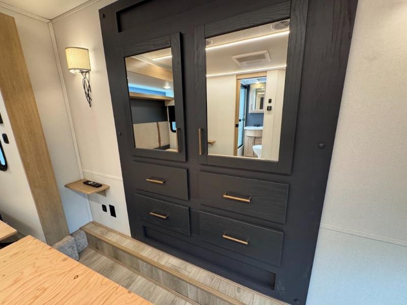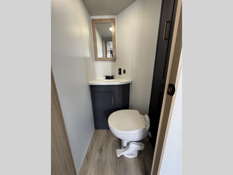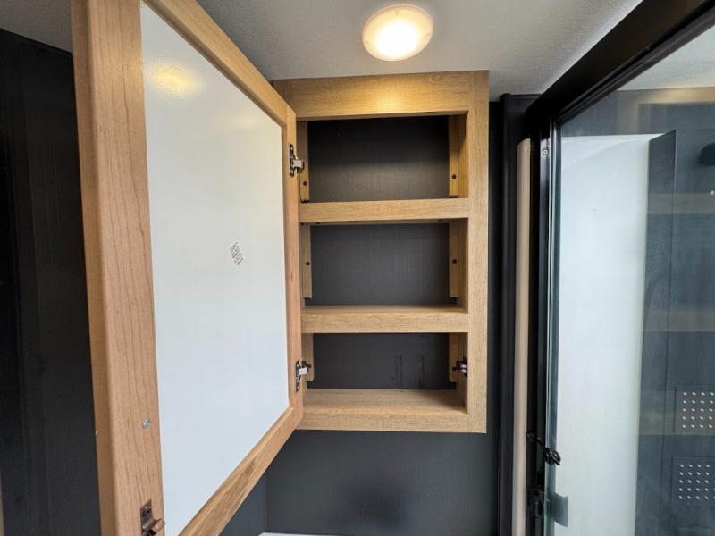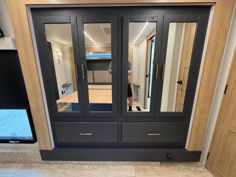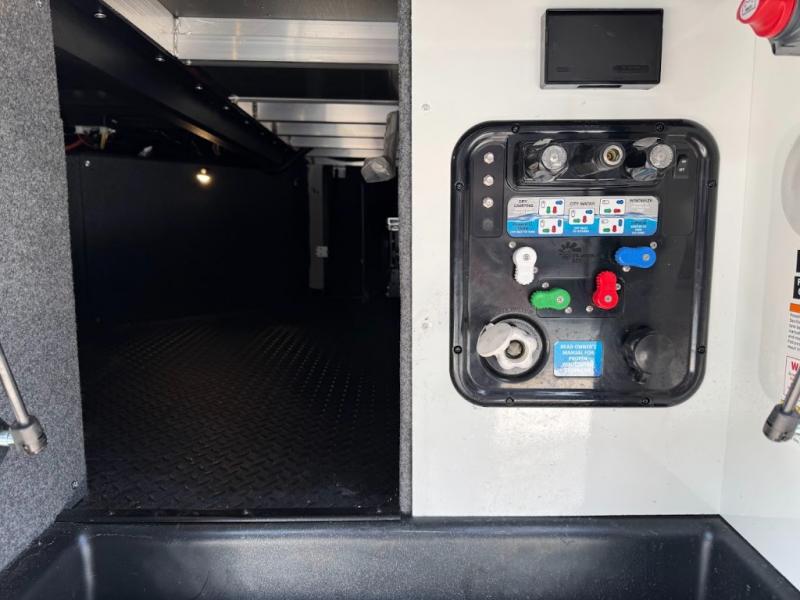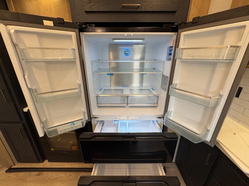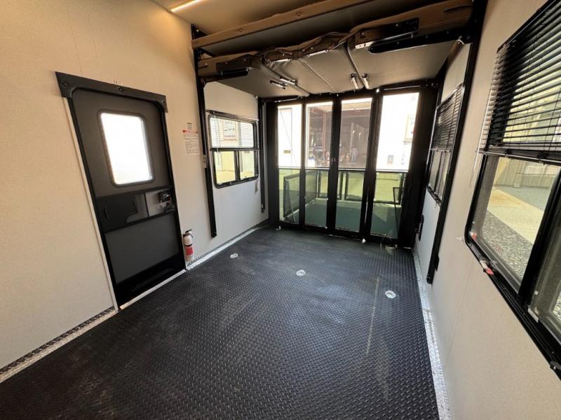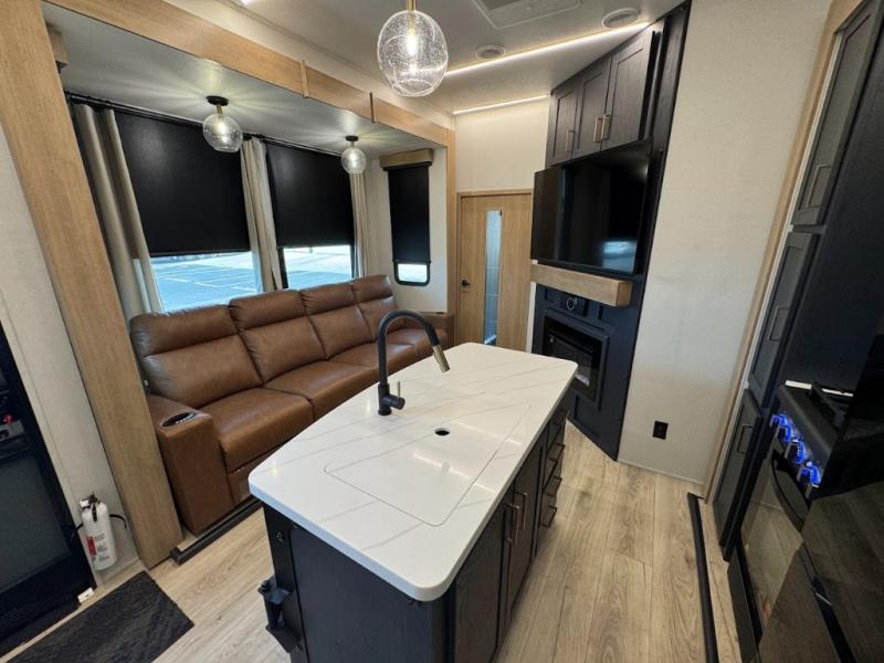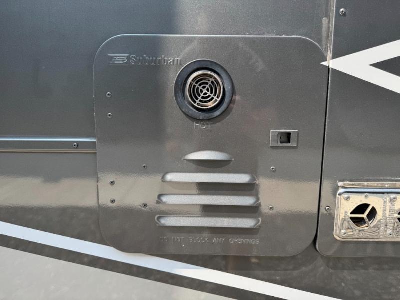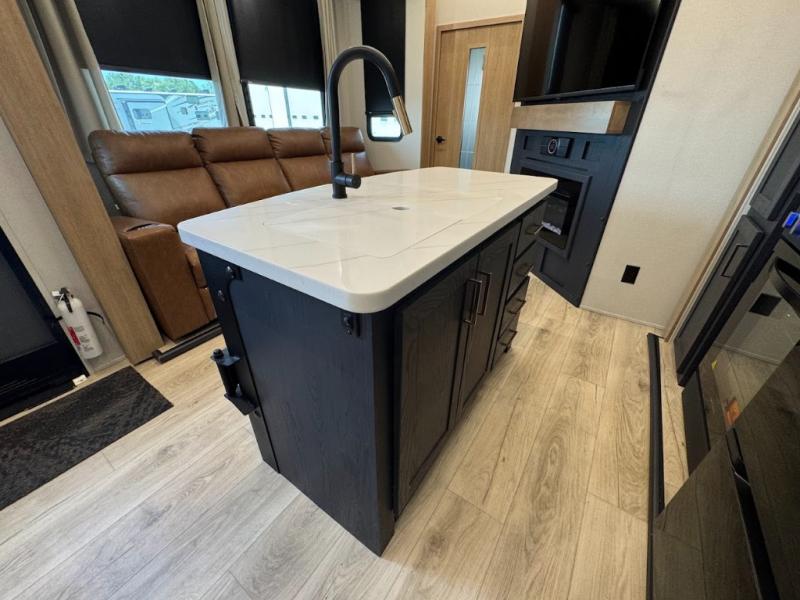 Trips to the lake or woods are made complete in this four slide out toy hauler. You can comfortably sleep eight people each night between the East to West tilting king bed, the electric queen bed with a bed underneath, plus the large sofa in the main living area. There is even a loft for the littles ones or you can use this space for storage! Having a bath and a half on board is sure to come in handy, along with dual entry doors and tons of storage space. This Cyclone kitchen is packed with everything you need while you're away from home, including a massive 24" stand alone oven, a hutch and a pantry for food storage, plus a kitchen island with swing out stools.
