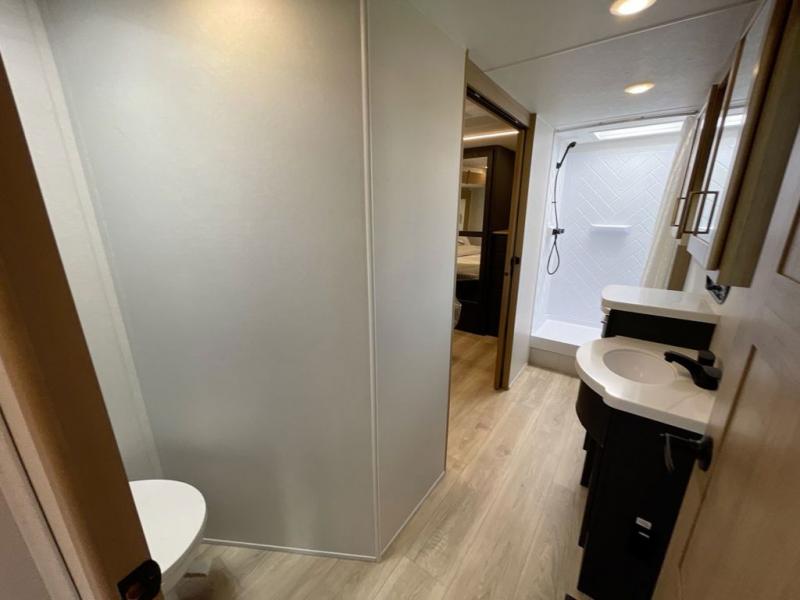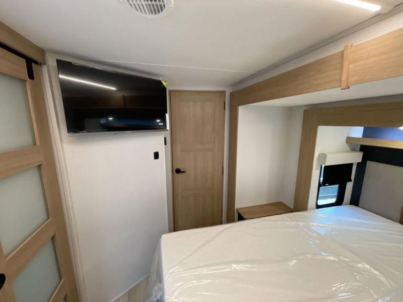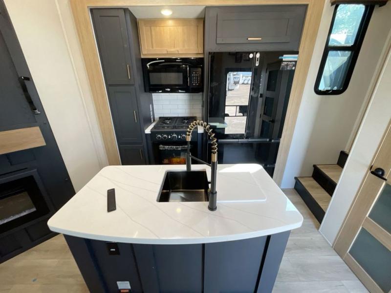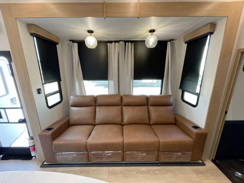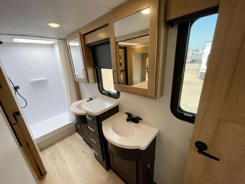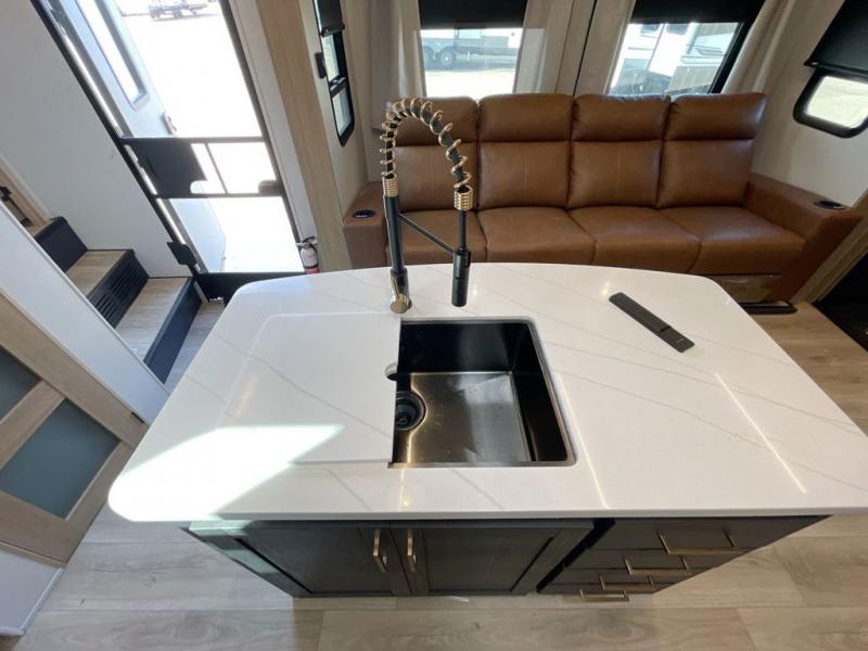 You're going to love every minute spent in this spacious toy hauler. The 17' 9" garage includes a its own exterior entry door, a half bath, and sleeping space for five to six with the included loft. There is even washer and dryer prep here that will come in handy after trail riding. Everyone can meet in the main living/kitchen area that includes a kitchen island, a large sofa, and a 50" LCD HDTV for movie night. The front of this model is shared with the unique master bedroom and bathroom that includes a tilting king bed slide out, a spacious full bath with dual bath sinks, and tons of storage space for all your belongings!