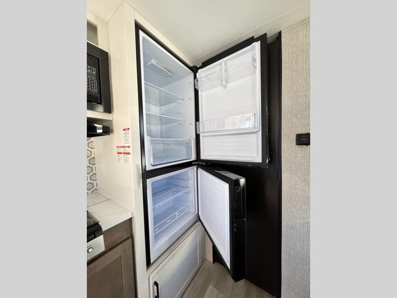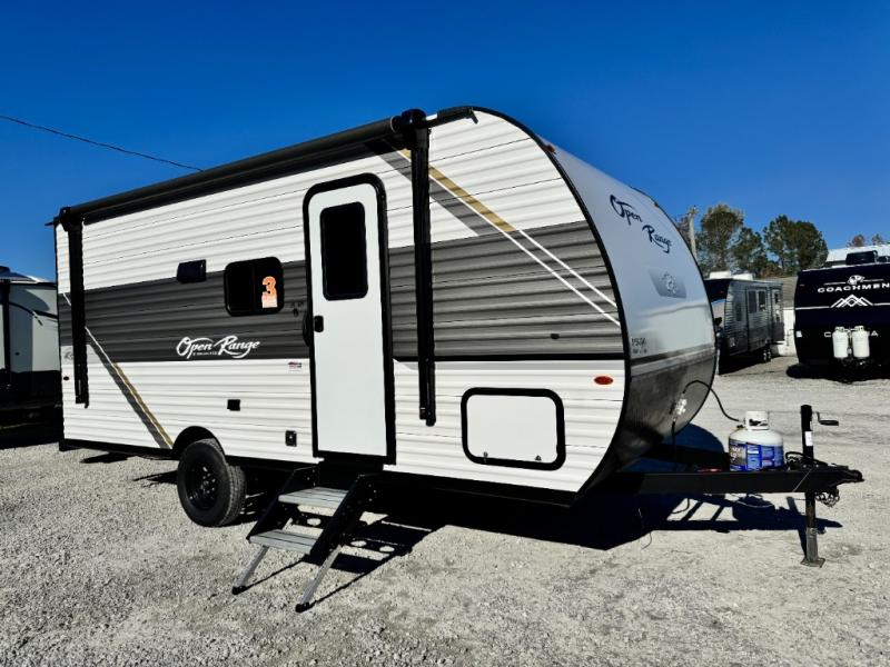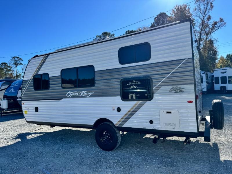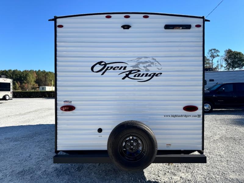 The affordable Open Range Conventional travel trailers by Highland Ridge are ready to meet your camping needs! You will appreciate the durable Magnum Roof system, plus each model is constructed with black front diamond plate protection, 5/8" main floor decking, and self-adjusting electric brakes with E-Z Lube axles for smooth towing. The 81" interior height means you won't feel cramped when relaxing with friends and family, and the residential vinyl flooring throughout is easy to clean, which will be perfect if you're camping with little ones or pets. These models also include a ceiling mount Bluetooth speaker, a digital TV antenna that will go perfectly with the optional Smart TV, plus a 13,500 BTU roof mounted A/C to keep you cool on those hot summer months.